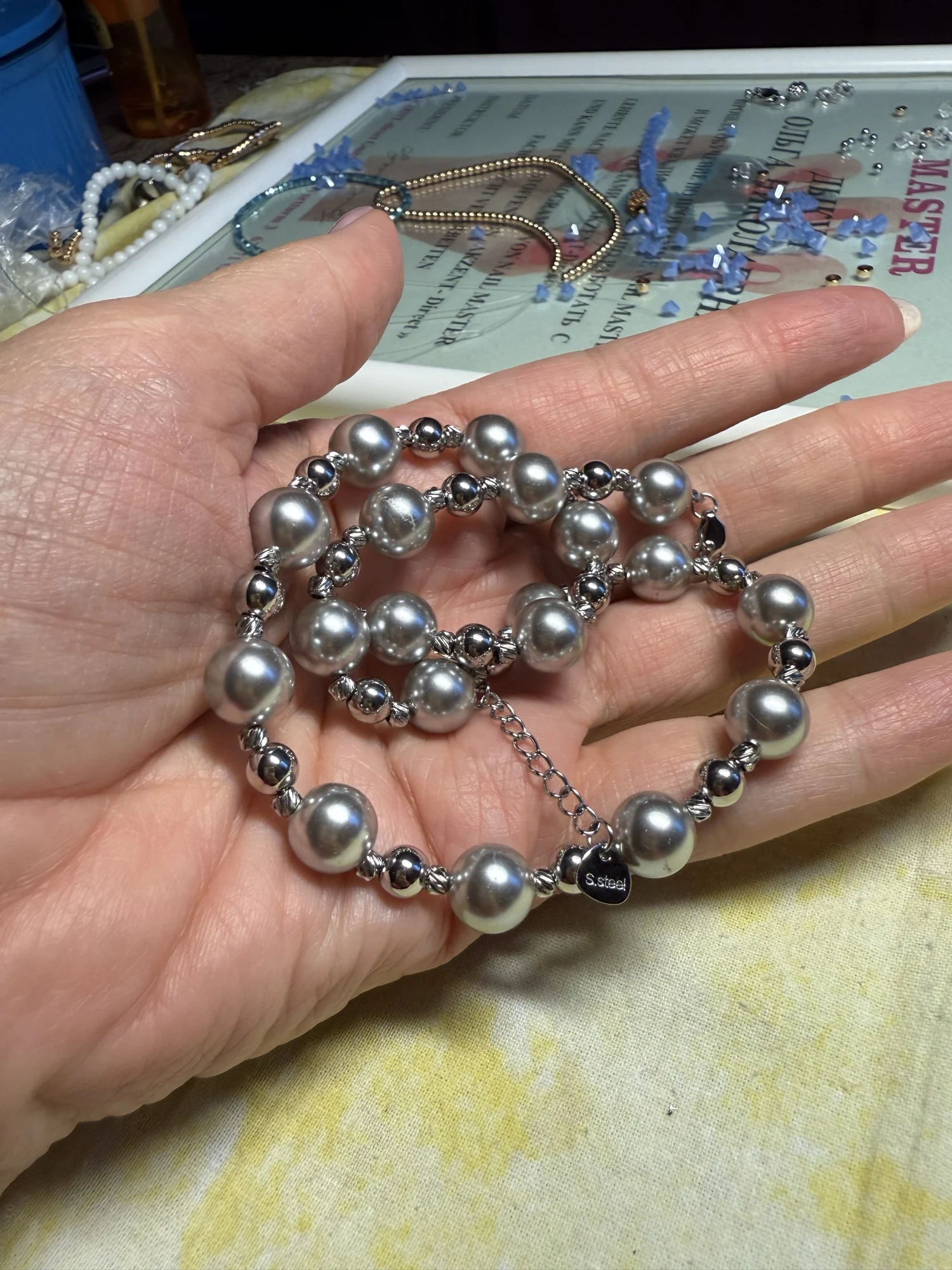 Цепочка из нержавеющей стали с искусственным жемчугом Yhpup