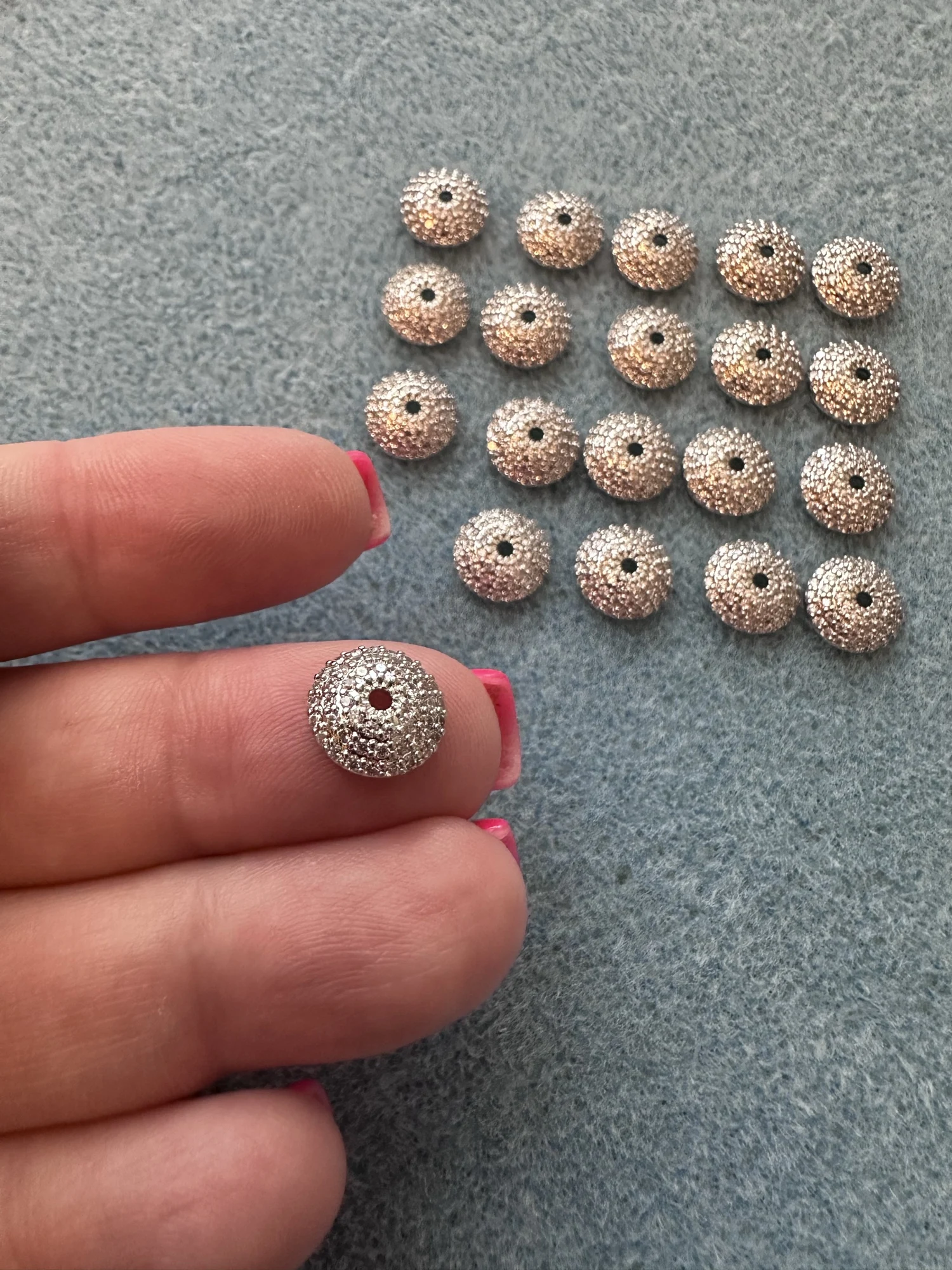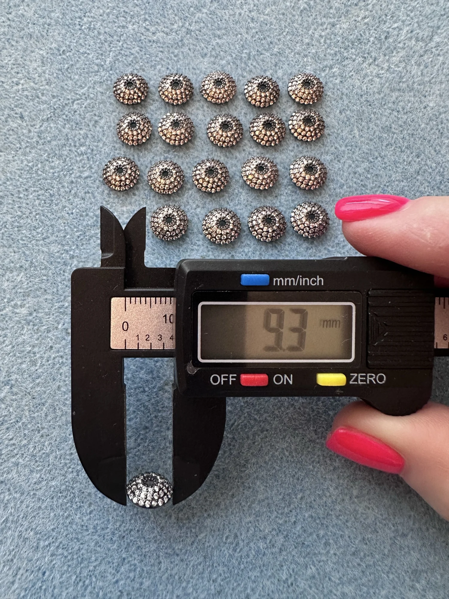 Невероятной красоты и качества шапочки! Однозначно стоят своих денег! Сама шапочка чуть меньше заявленных 10 мм - она 9,3 мм. Примерку сделала на бусину 9,4 мм и показала на фото, села отлично, но так же, думаю, подойдёт и на бусины чуть побольше размером.Y T. 27 июля 2025