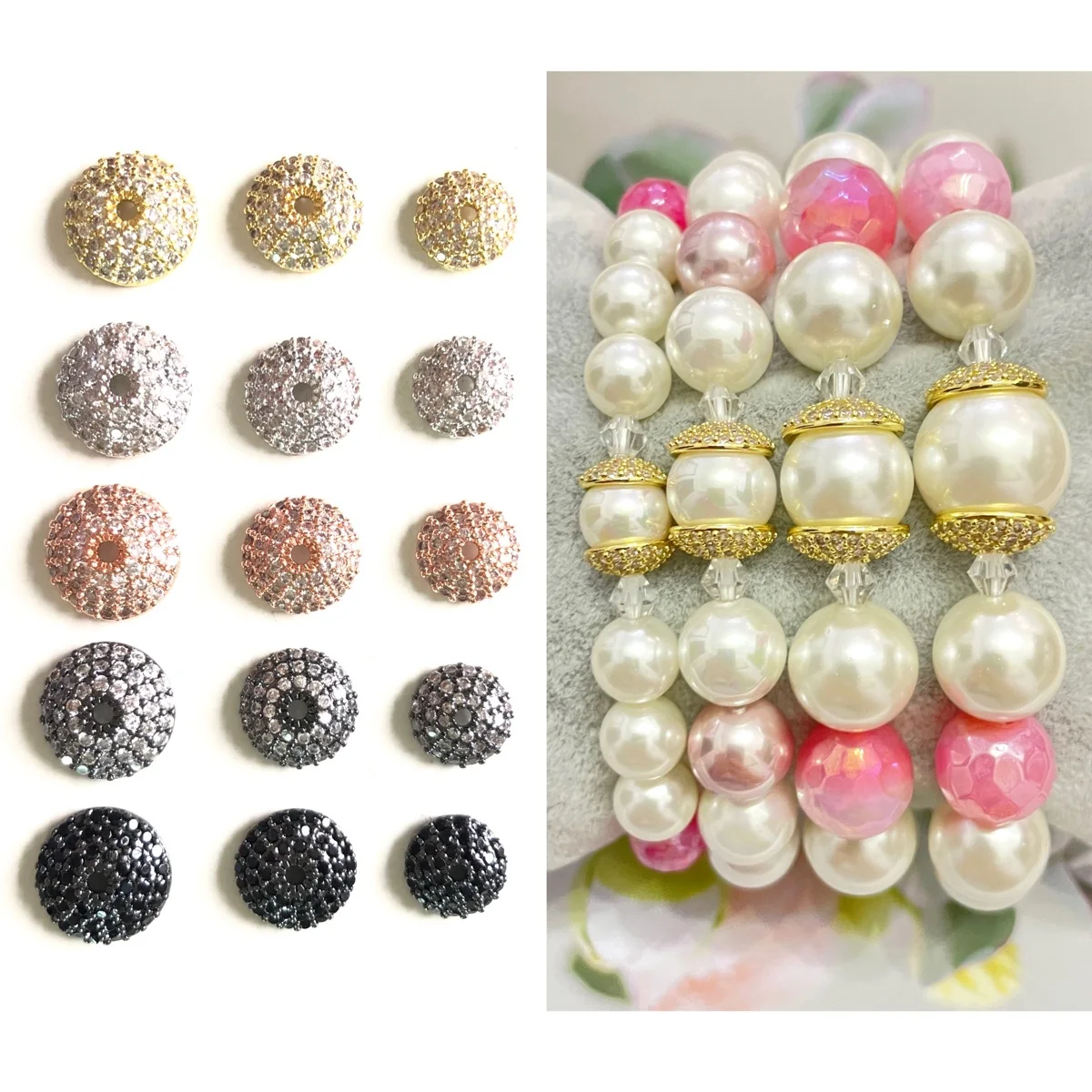 20pcs 8/10/11mm Cubic Zirconia Pave Beads Caps Spacers for Bracelet Necklace...