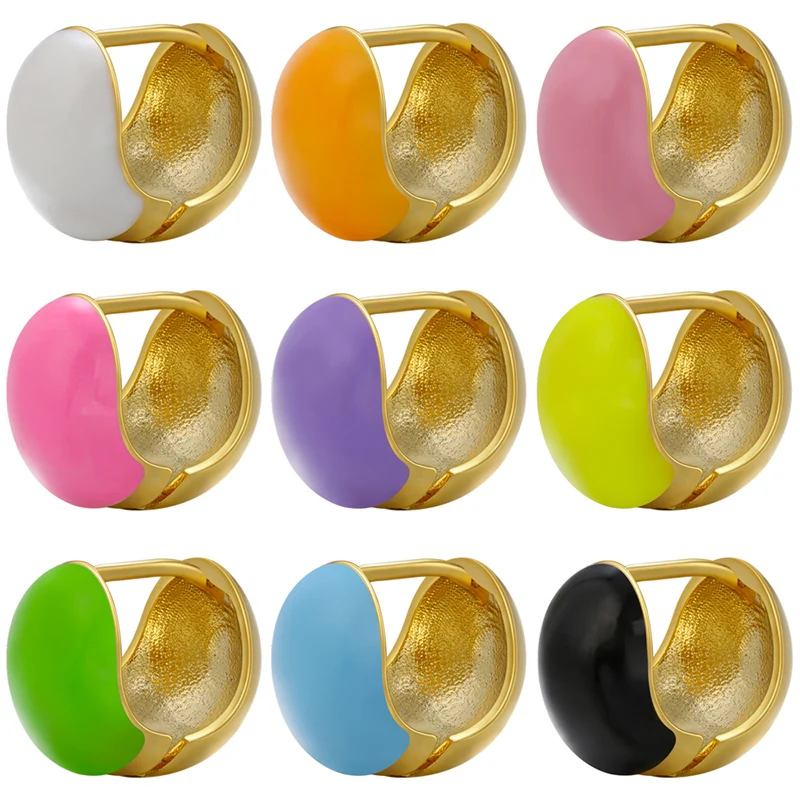 ZHUKOU NEW Lovely Gold color Round Small hoop Earrings Enamel Oil Drop hoop...