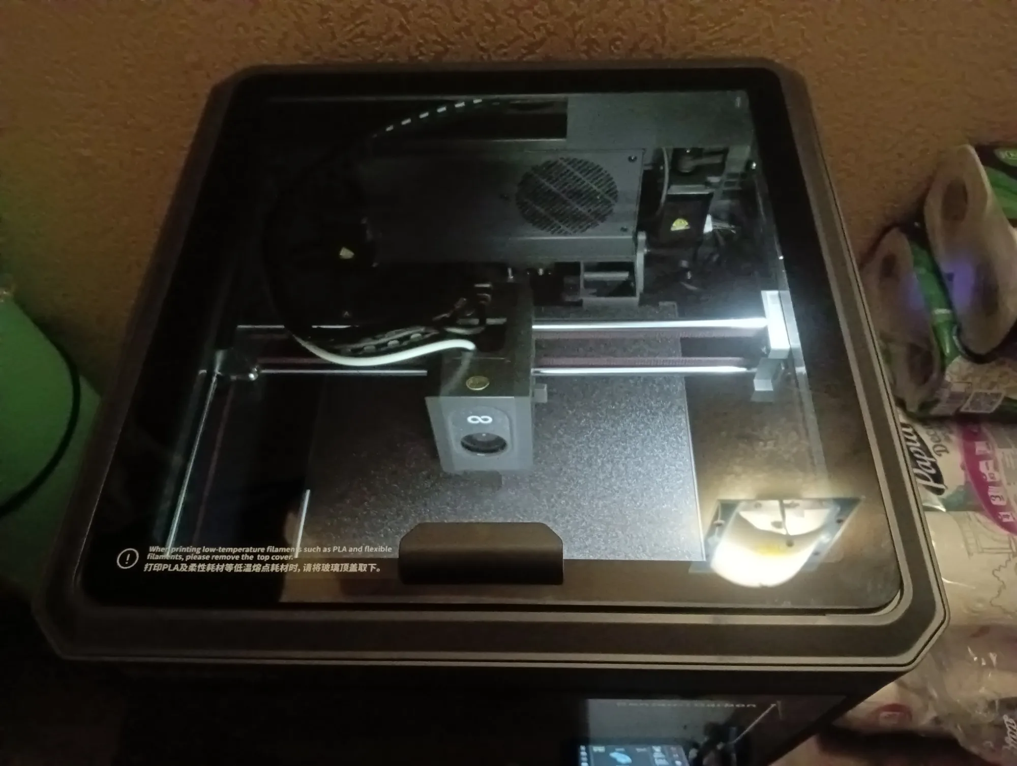Доставка СДЭК. 3-D принтер первый. Пока он ехал и начитавшись "хороших" отзывов про него, немного поволновался. Но все обошлось. Коробка без повреждений. Содержимое тоже. Упаковка в принципе хорошая . если не пинать или бросать. После подключения, запуск с коробки. Не знаю насчет пишут 30 минут... по моемому у меня управился минут за 10. Молодежь как всегда торопиться, а посему я не знаю, произошло обновление после подключения к WiFi или нет. Я в это время не присутствовал, а торопыга из 2000-х подключил его к WiFi и сразу не посмотрел. Лишь бы им кнопки бездумно тыкать! На сегодня стоит прошивка V 1.1.29 ... на что то другое при запуске не обновляется ... последняя или нет - бог его знает. Распечатал Бенч ...Коробку ... шпатель с переходом остатка белого на красный на ручке и держатели для верхнего стекла. В целом мне понравилось. Кстати, когда закончился кусок филамента из коробки для пробы печати, принтер остановился и походу ждал когда загружу другим. Думается заправив новый, поехал бы печатать и дальше, но х/з. Теперь будем разбираться что да как и как дальше с ним жить. Чуть не забыл. Только сейчас обратил внимание, когда идет запуск принтера и появляется логотип производителя, справа внизу(в углу) монитора присутствует достаточно заметный засвет треугольником экрана. Будем посмотреть.