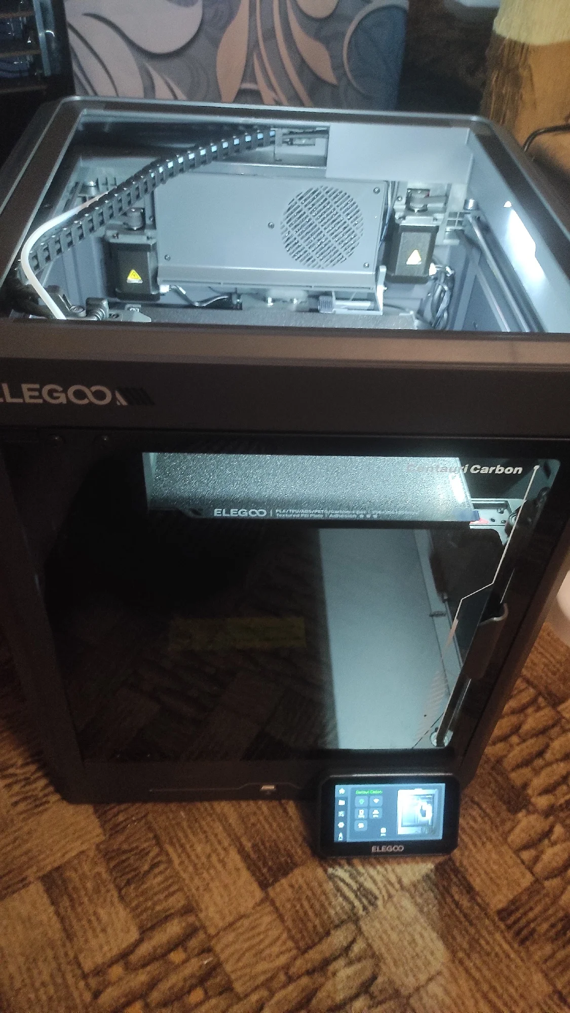 Доставили за 6 дней, по принтеру нареканий почти нет, всё супер после 5 мишки. Шумит конечно при включенном обдуве. Подсветки бы и с другой стороны а то когда таймлапс делаешь, перекрывает тень от головы. Зря убрали с камеры подсветку. Запись видео можно сразу в слайсере на компьютер скинуть как и на флешку. Печатал на первую пробу старым пла который лет 7 пылился. Вполне нормально на мой взгляд получилось. Интересно что должно было лежать в пустом отделении в коробке там где кабель питания с держателем катушки. Бенчи распечатался за 15 минут а орка куб за 36 минут настройки не трогал.