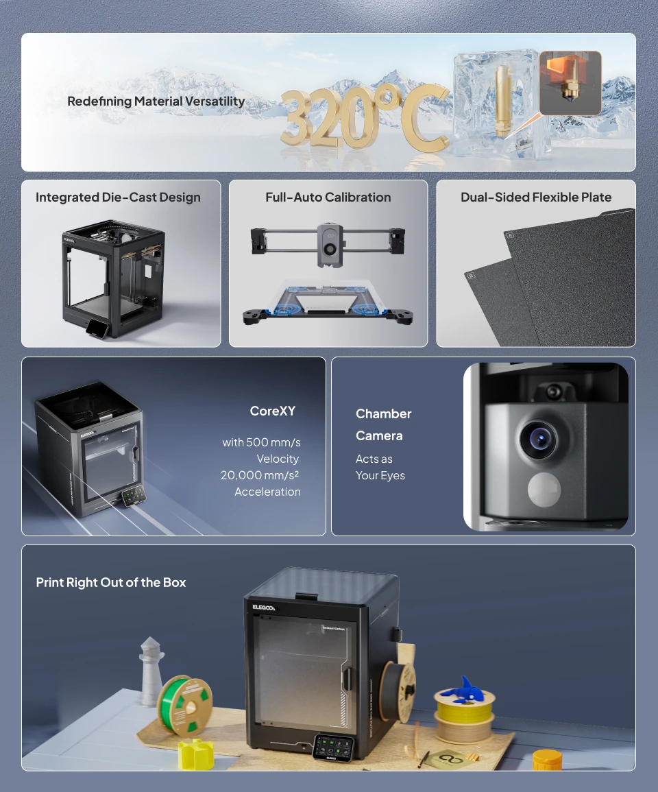 - Программное обеспечение:ELEGOO Slicer (Recommended), Orca, Cura
