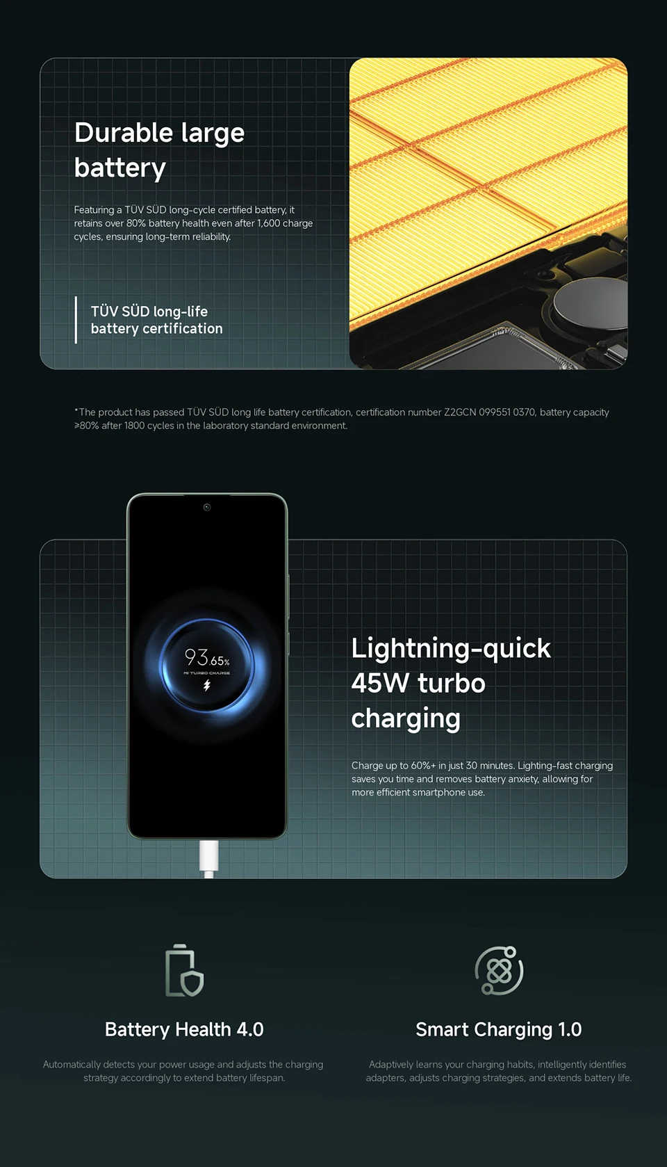 Аккумулятор-------- Аккумулятор 5110 мАч (тип.), турбозарядка 45 Вт, интеллектуальный зарядный двигатель