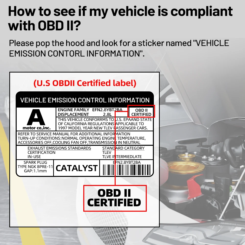 Пожалуйста, снимите капюшон и найдите наклейку с надписью «Информация контроля выбросов автомобиля».