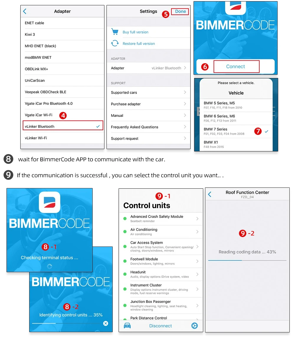 Шаг 8: подождите, пока приложение BimmerCode обменится данными с автомобилем.