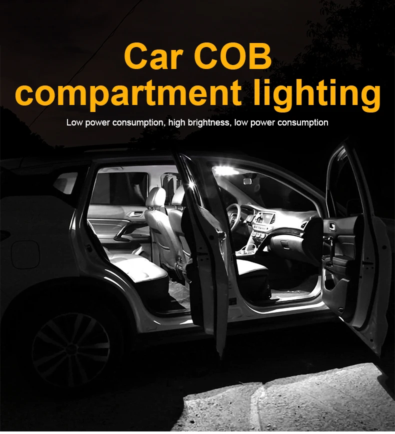 1 шт. гирлянда светодиодная лампа C5W COB 31 мм 36 мм 39 мм 41/42 мм T10 W5W автоматический купольный светильник для номерного знака, лампа для багажника, габаритные огни