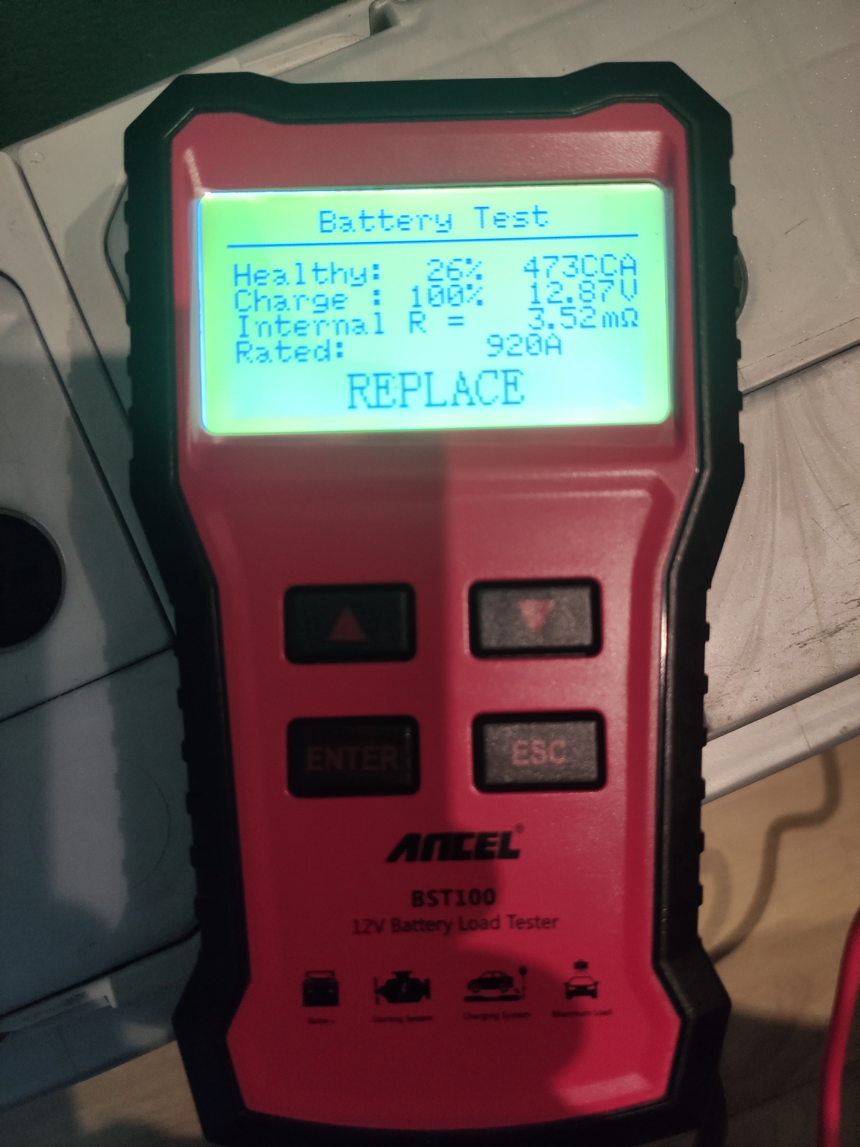 - 12 V Battery tester Function 6:Identify battery status Good or Replace