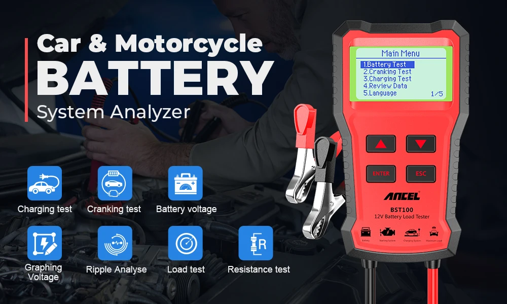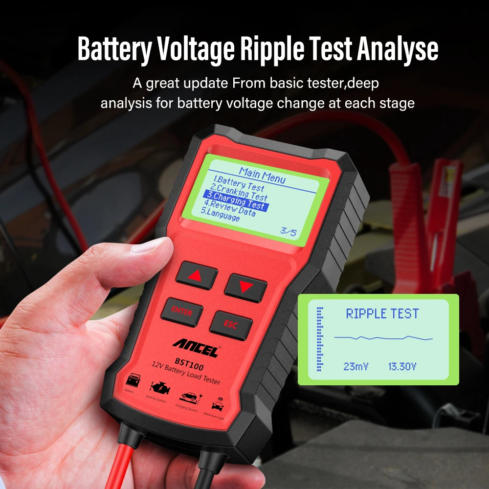 - Ancel Battery Tester 12v Function 9:Battery Charging Tester, Ripple Test
