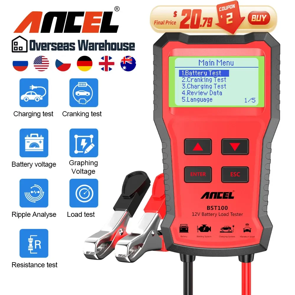 ANCEL BST100 тестер автомобильного аккумулятора 12 В анализатор аккумулятора тестер зарядной цепи тестер аккумулятора автоматические диагностические инструменты