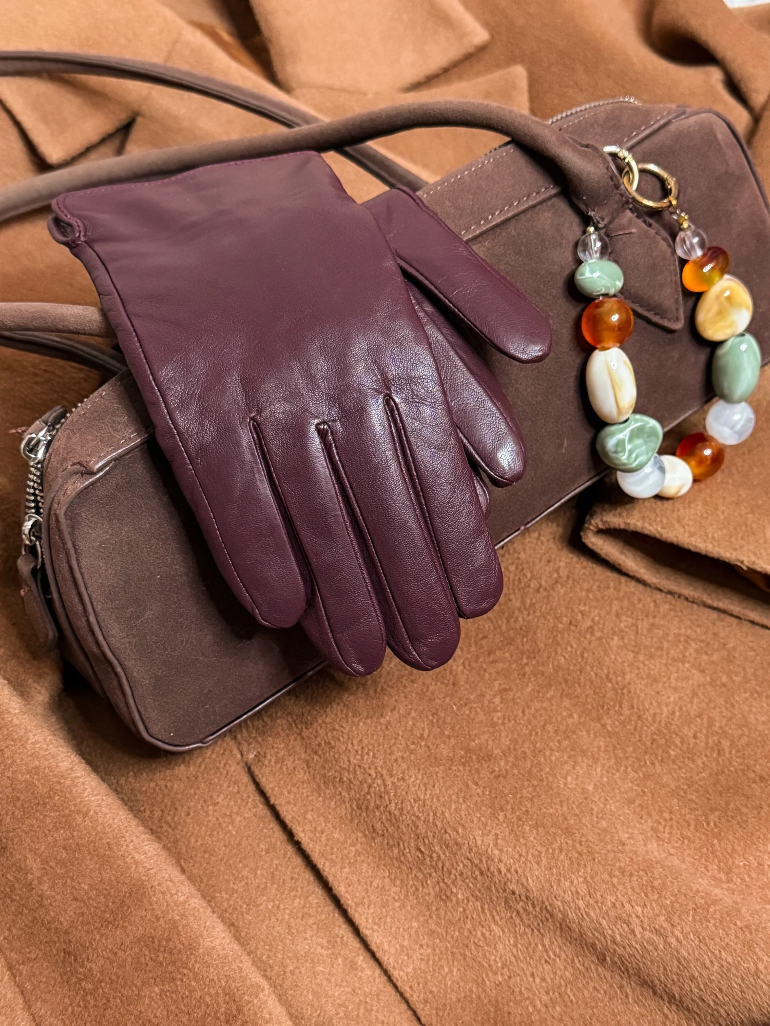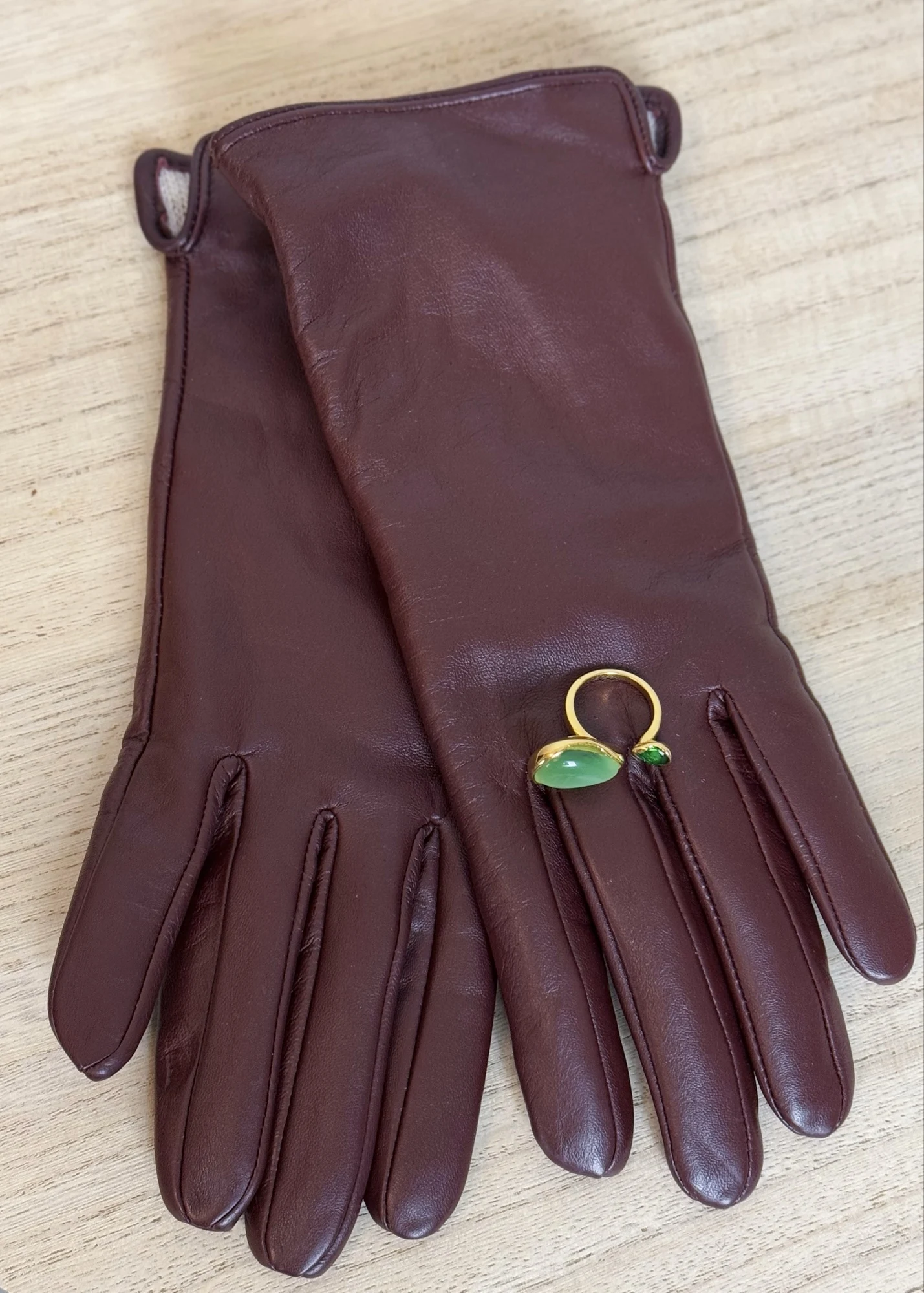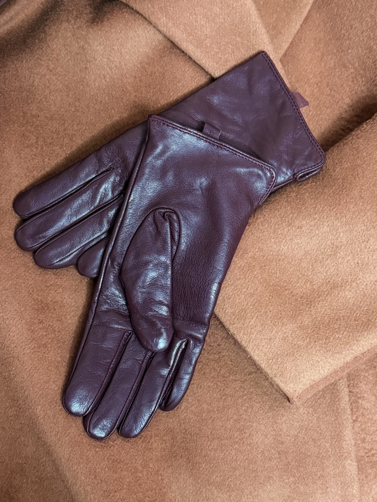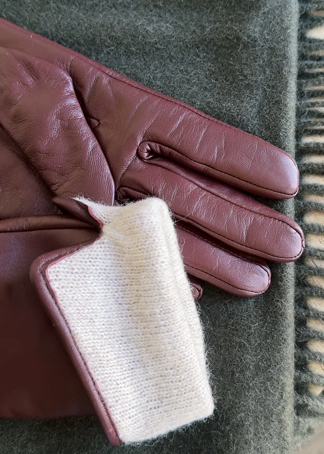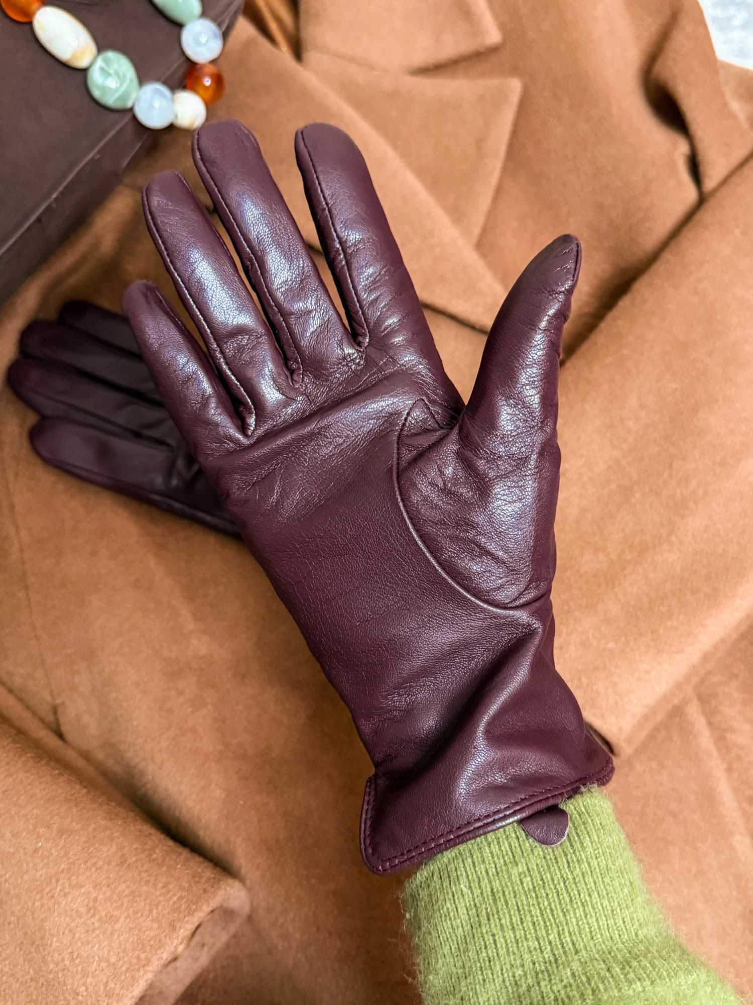 Перчатки из натуральной кожи Подклад из шерсти. Мягкие, тепленькие. Хорошее качество. В отзывах девочки пишут, что такие на wb стоят в 2 раза дороже. Уверена, что закупка именно с Али. Цвет глубокий винный. Особенно понравилось, как он сочетается с голубым. Отличные, буду еще брать в бутылочном оттенке, а может в каком-нибудь ярком, пока не решила )