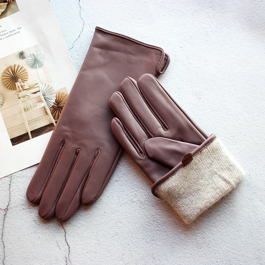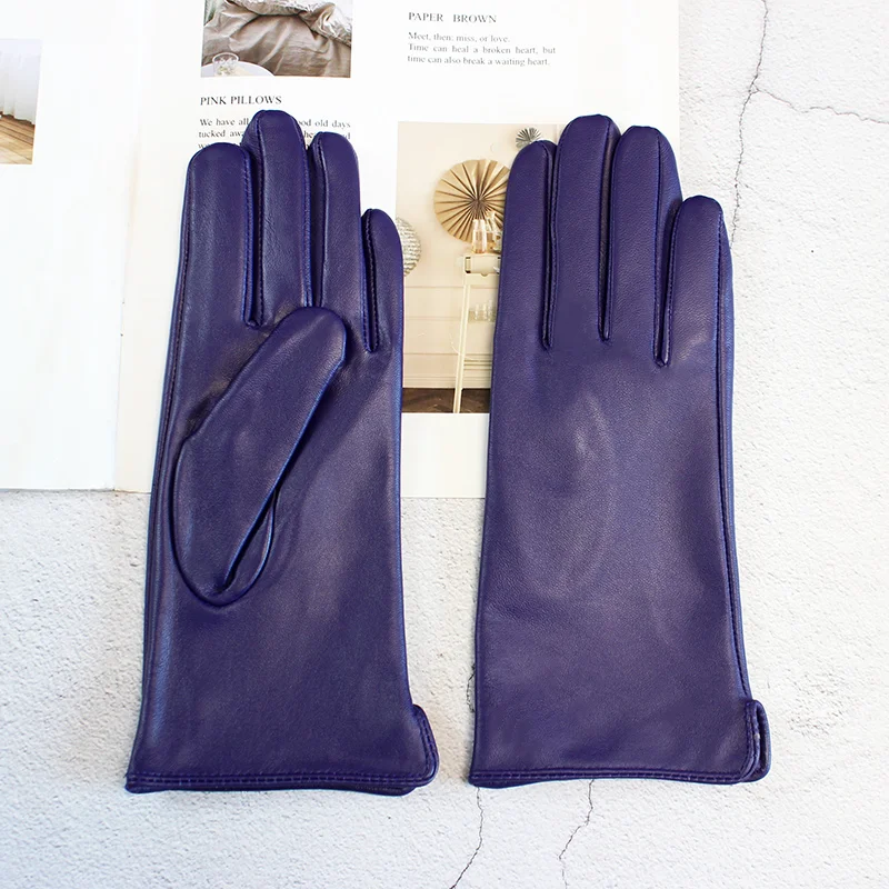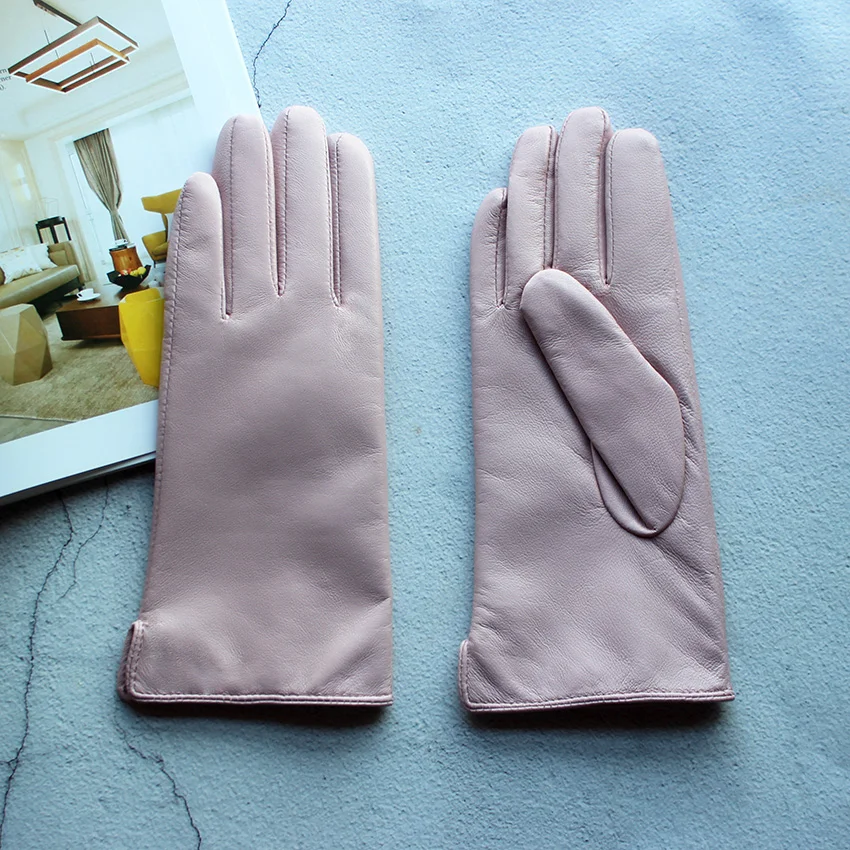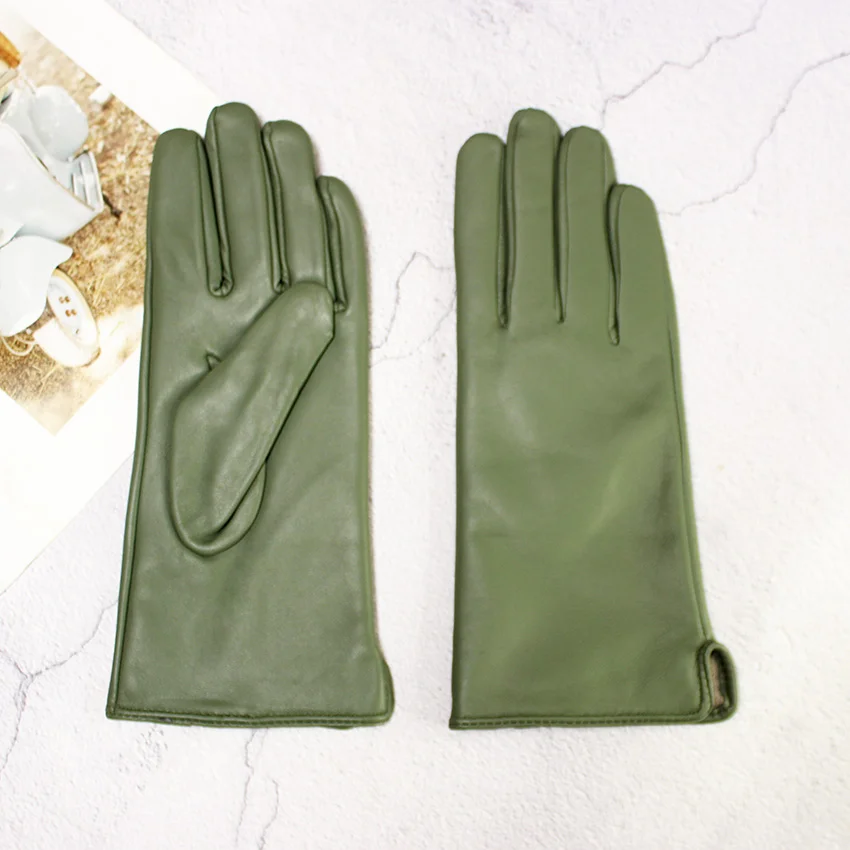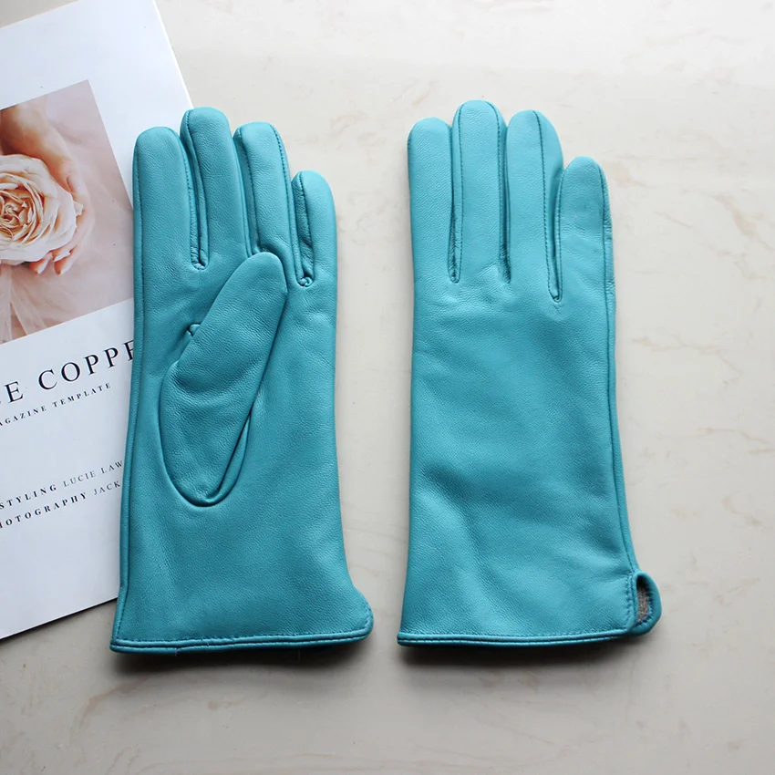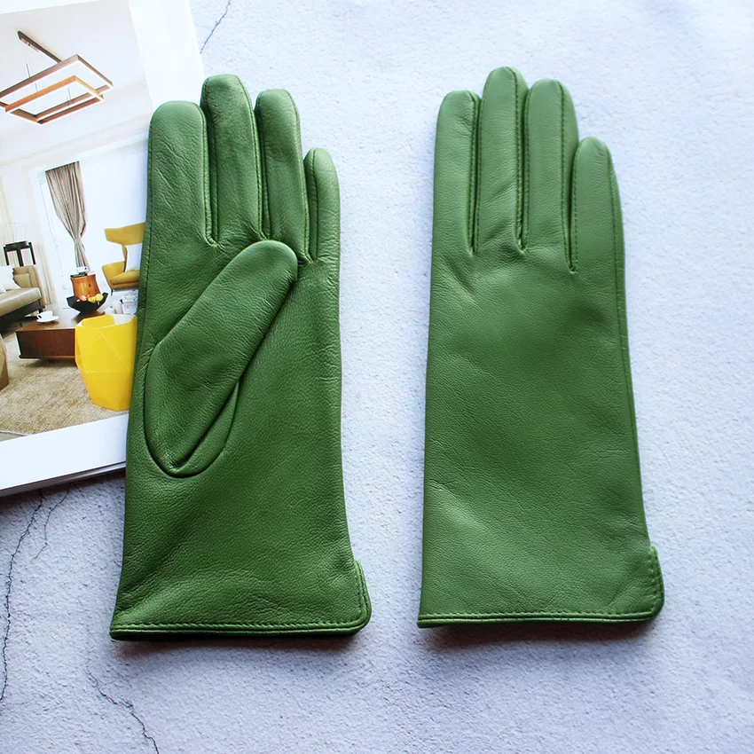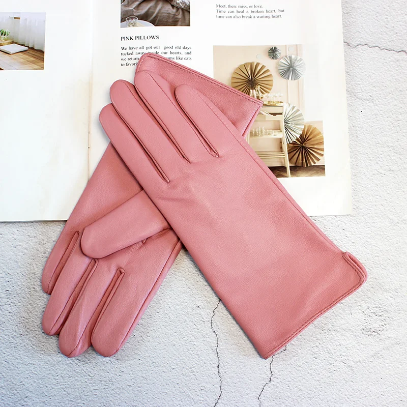 Кожаные перчатки из овечьей кожи женские осенние теплые флисовые цветные модные...