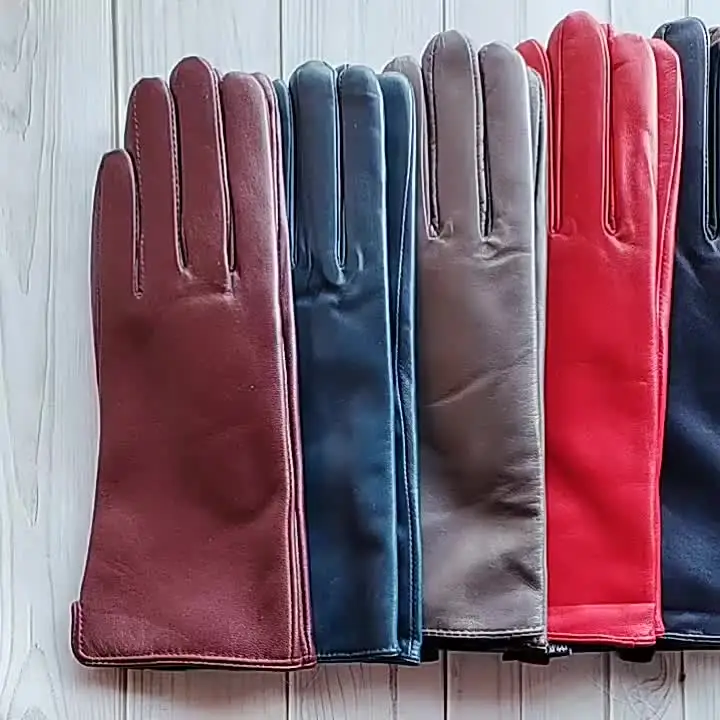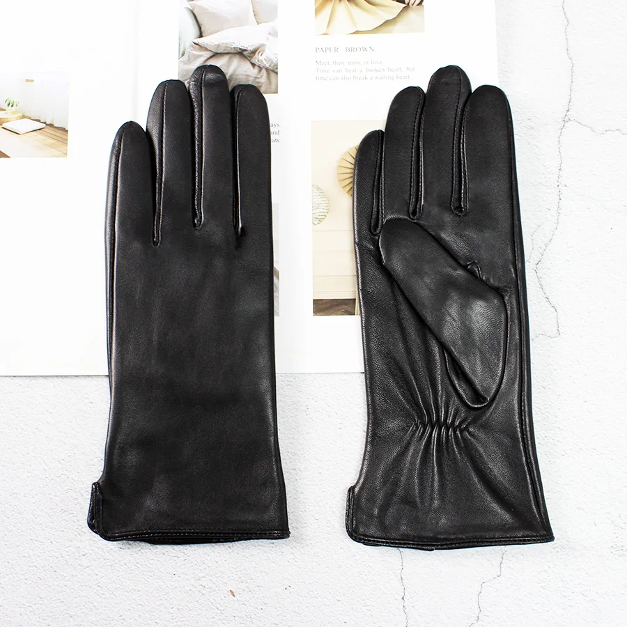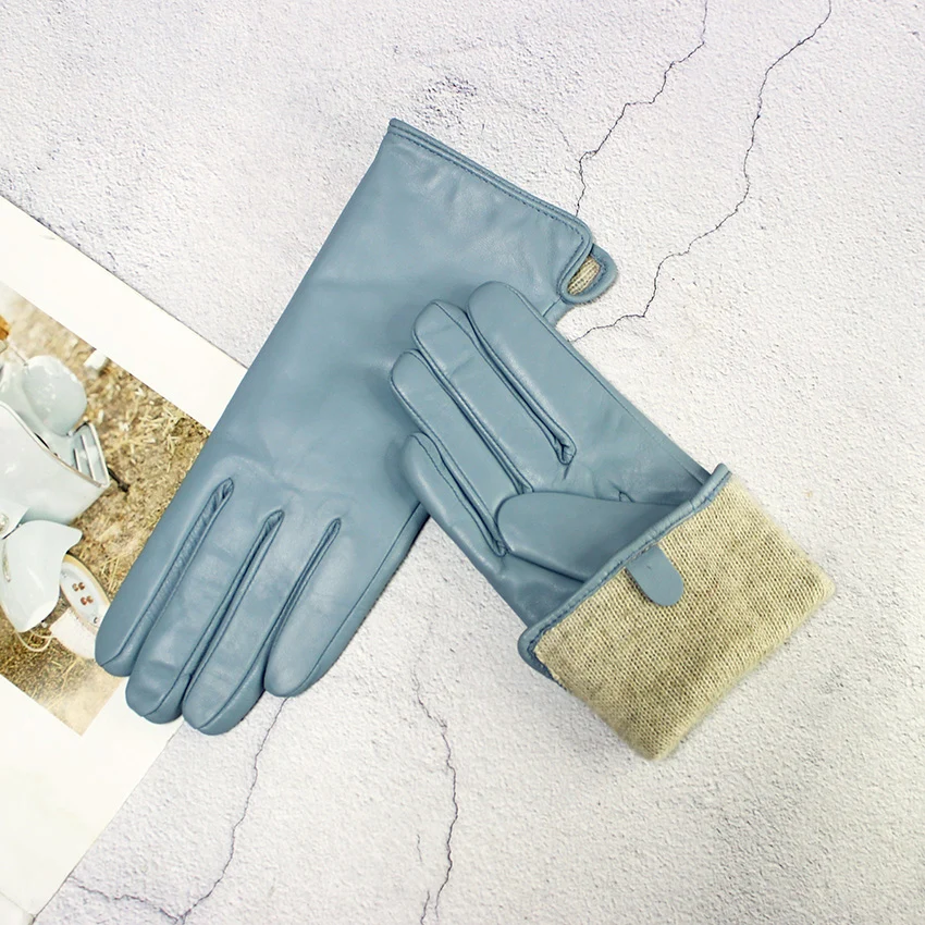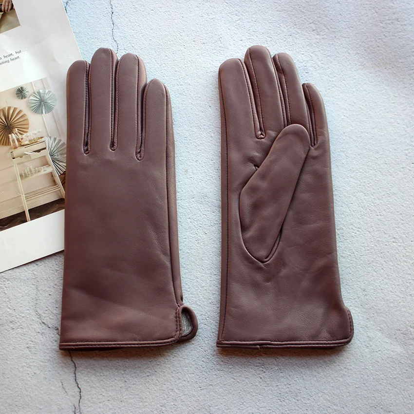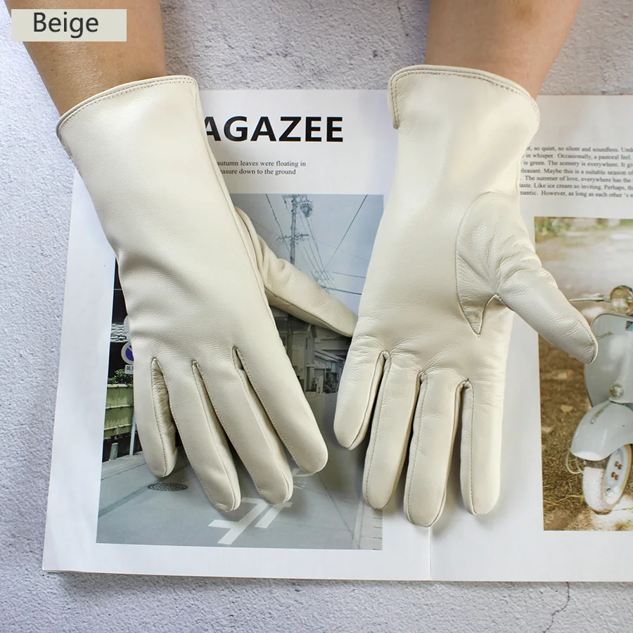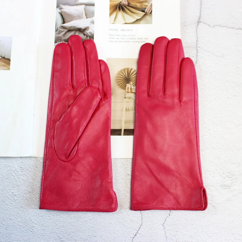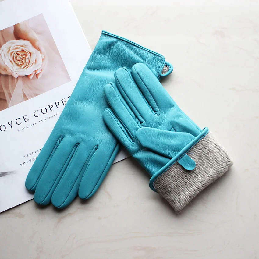 Кожаные перчатки из овечьей кожи женские осенние теплые флисовые цветные модные...