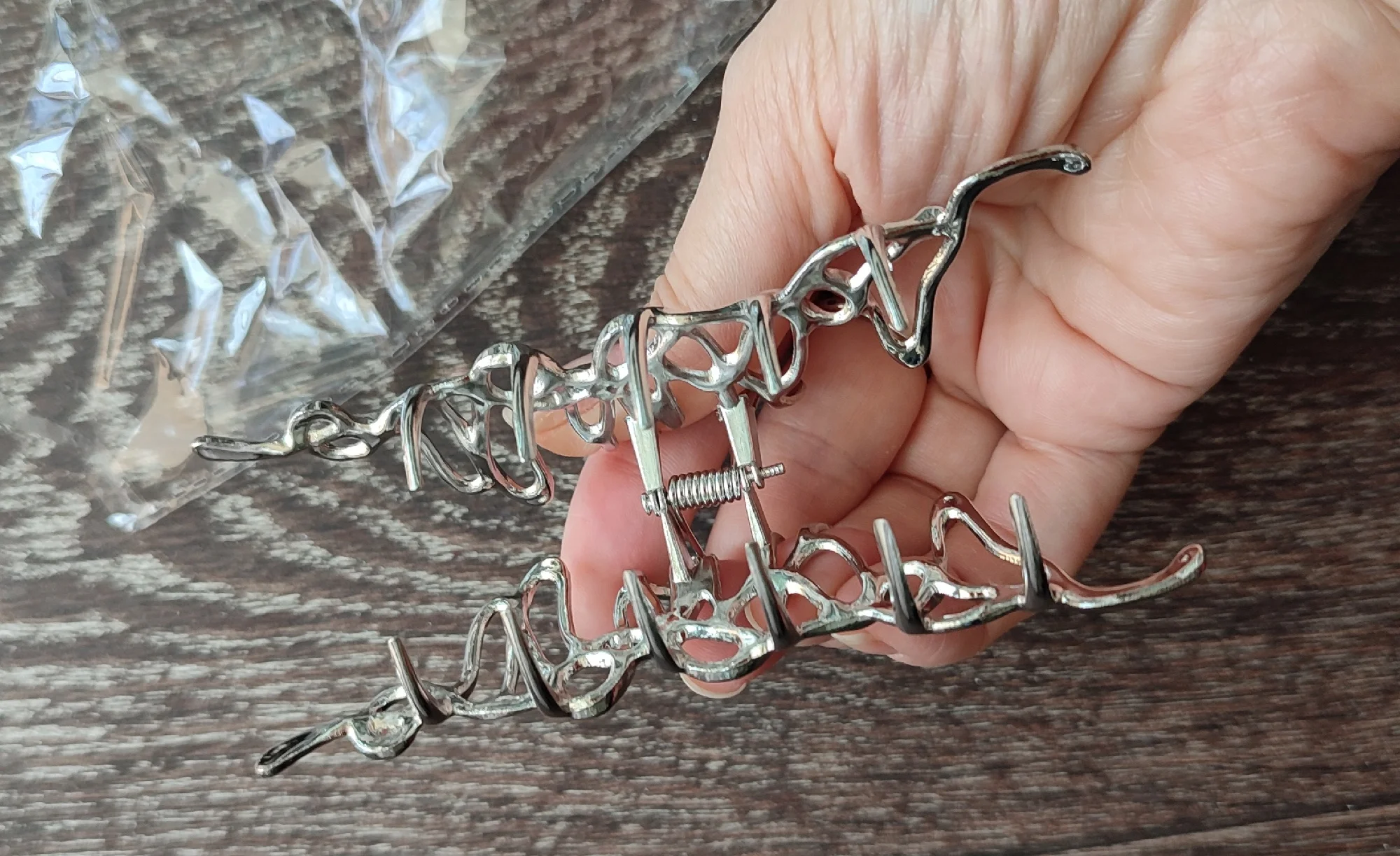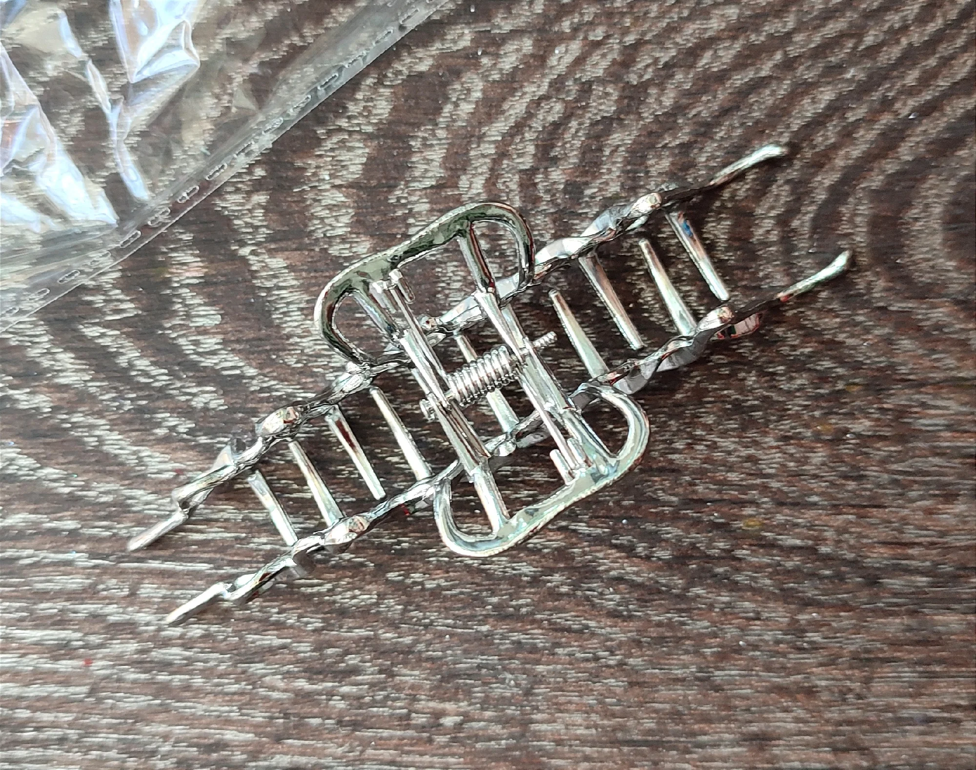 Доставка быстрая, упаковка в почтовый пакет + целлофан. Сама заколка понравилась, но очень тяжëлая, железная.)) На жидких волосах держится, но сползает. На вид железка прочная, не большая. Смотрится заколка красиво, но на тëмных и густых волосах! На моих жидких и белых не очень, скорее всего подарю.)) Продавцу спасибо, рекомендую! 👌🌹