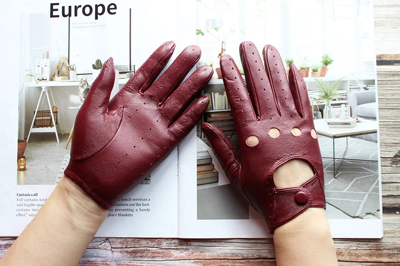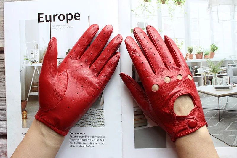 Женские кожаные перчатки Один Слои тонкий без подкладки полые Стиль обувь для...