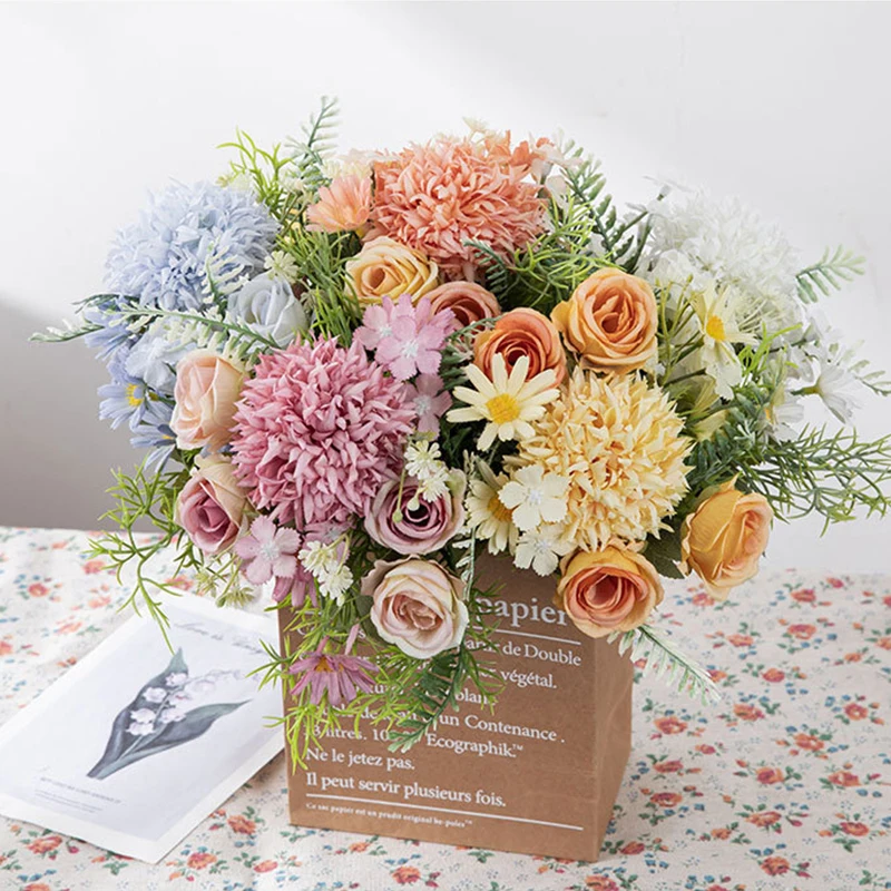 Rose chrysanthemum Silk Bouquet Artificial Flowers For Wedding Home ornamental...