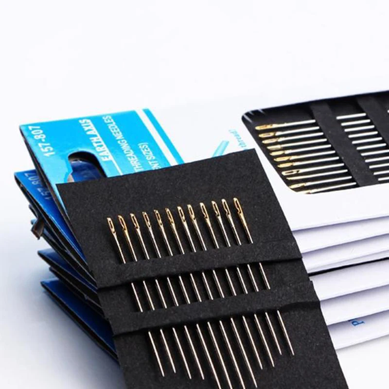 12pcs Self-Threading Sewing Needles Stainless Steel Quick Automatic Threading...