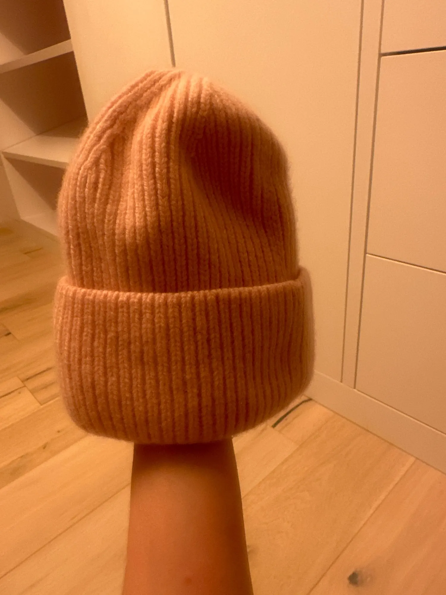 This hat is 100% wool! Perfect, natural material that keeps your head warm. It’s also such a cute pink color. I’ll likely buy more of these hats in different colors