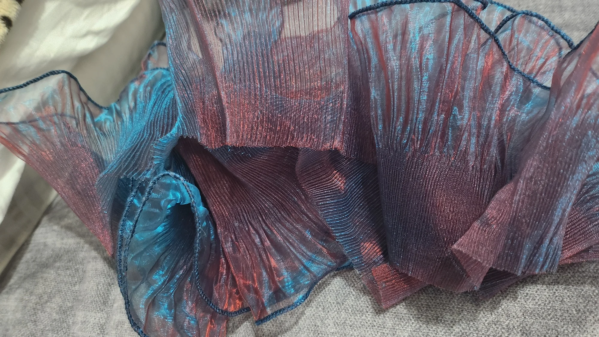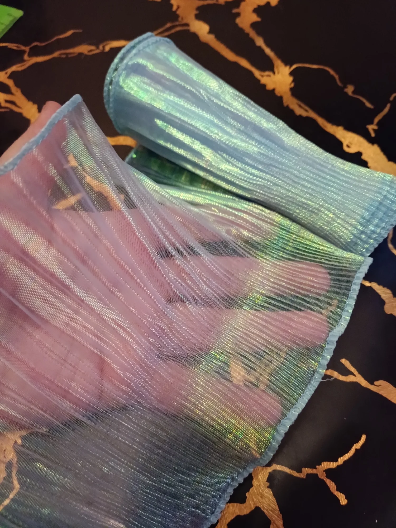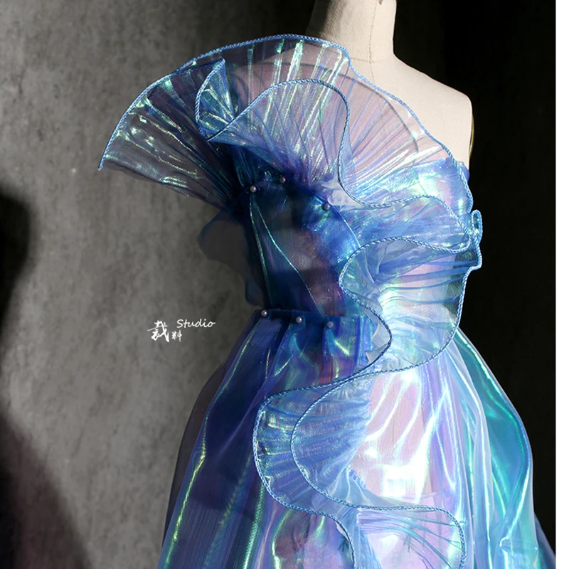 1 ярд синей кружевной ткани плиссированный эффект русалки лазерный неоновый блеск для женщин платье шириной 15 см