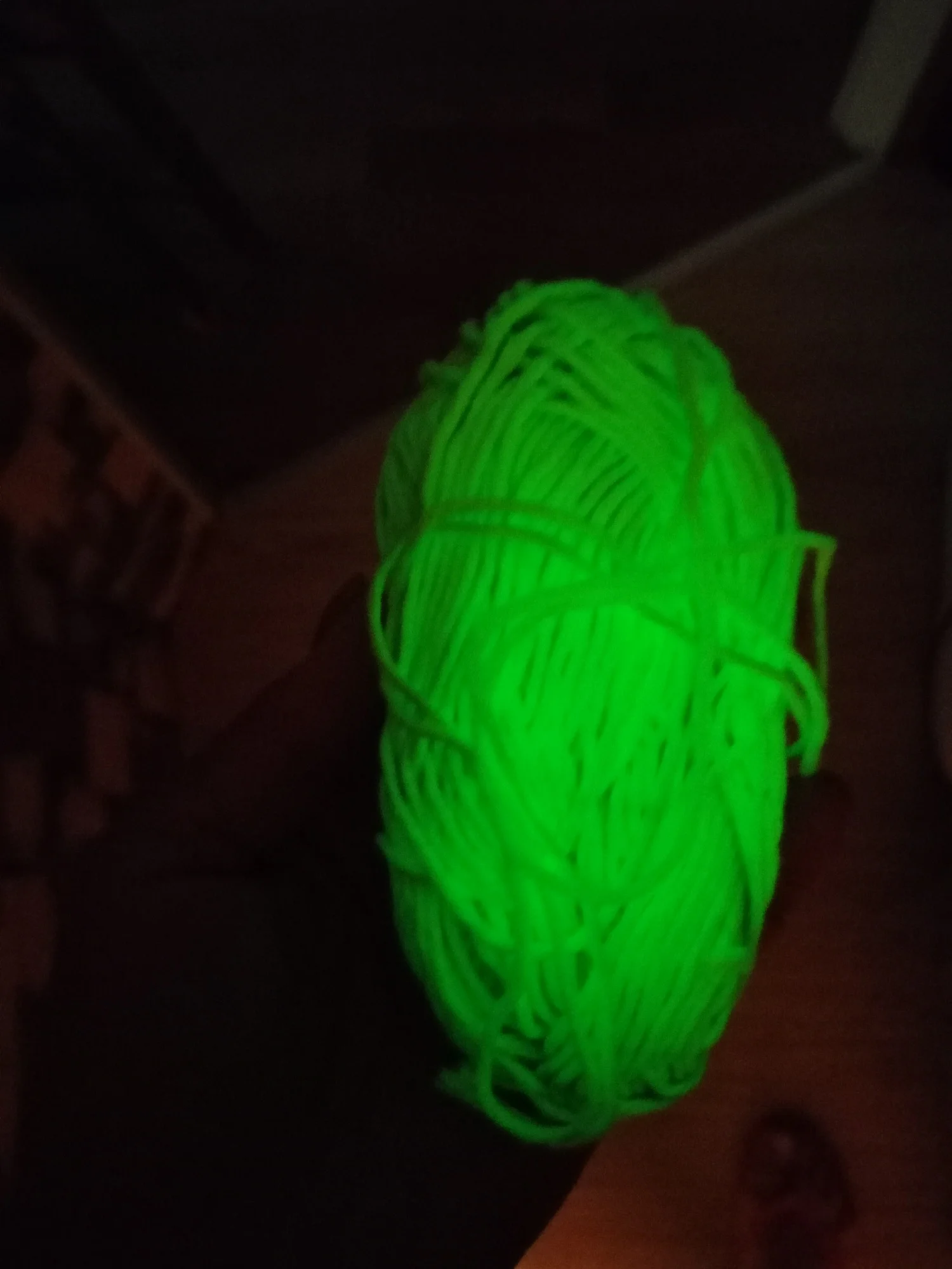 Отличная пряжа. Светится. 50грамм. похожа на хб. При зарядке 10сек. светится 10мин. постепенно тускнеет. Рекомендую.Юлия П. 30 июля 2024
