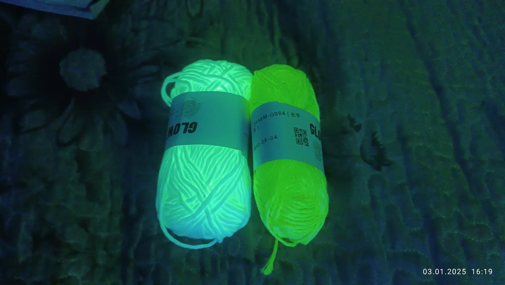 2.Светящиеся белой и синей пряжи являются наиболее очевидными.