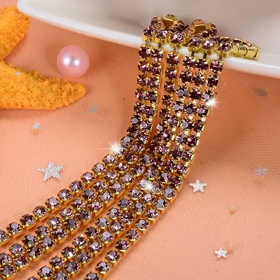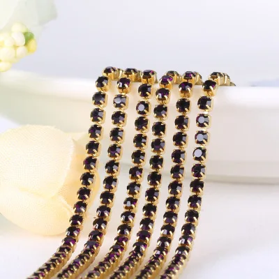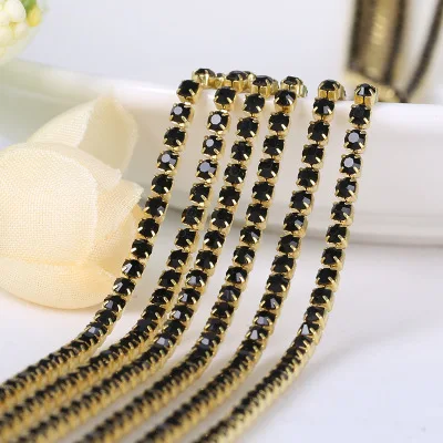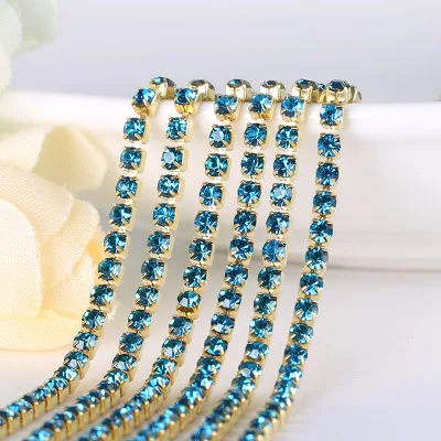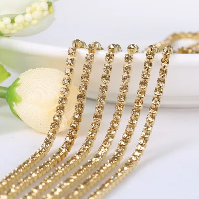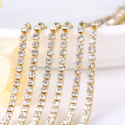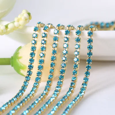1 ярд/шт 19 цветов стекло кристалл горного хрусталя цепи, золото дно пришить...