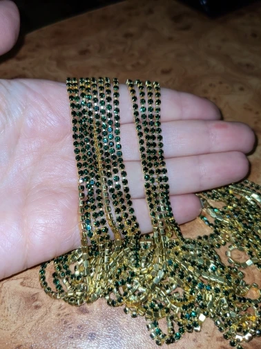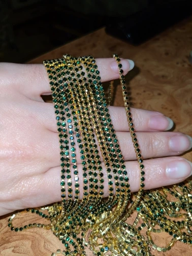Блеск просто изумительный! Мне нужно было 8 ярдов одним длинным куском и продавец любезно пошёл навстречу! Отправка была через 2-3 дня после заказа. Все стразы на месте и вроде как по длине всё точно вышло) Цвет изумрудный, как на фото продавца. Три недели до Калужской области, трек отслеживался везде. Очень довольна! Рекомендую!
