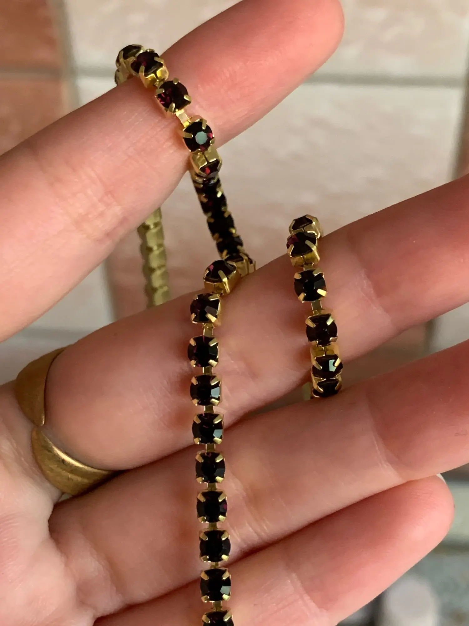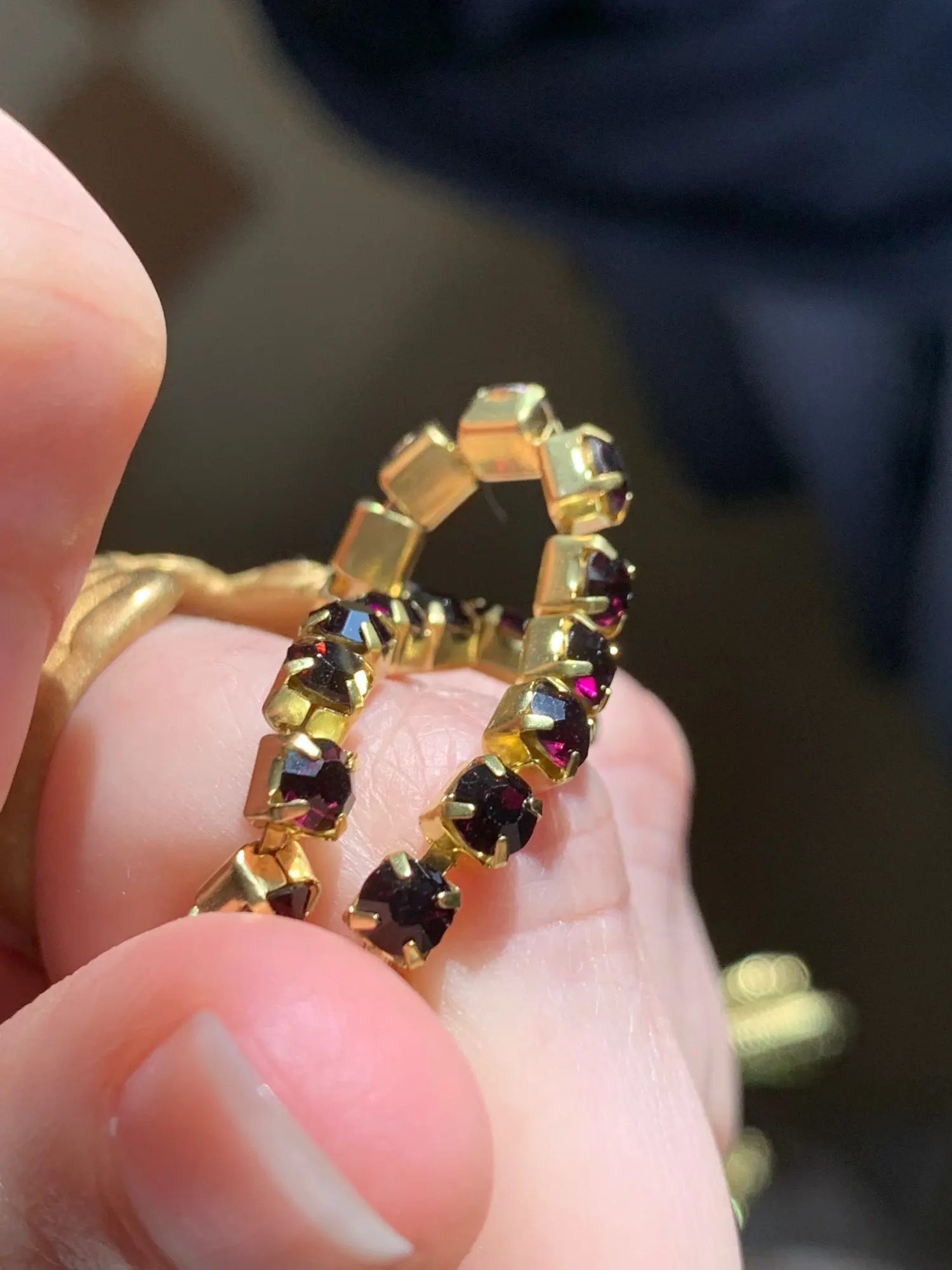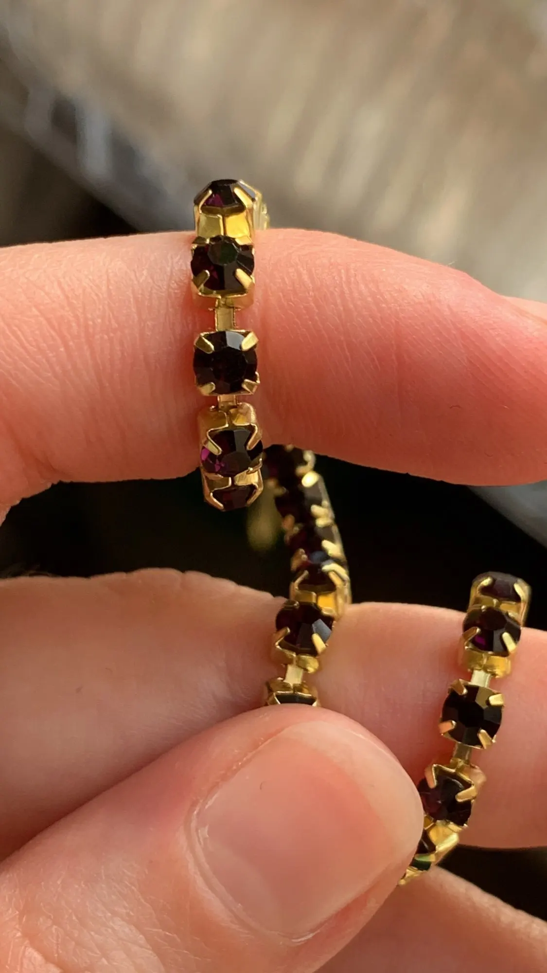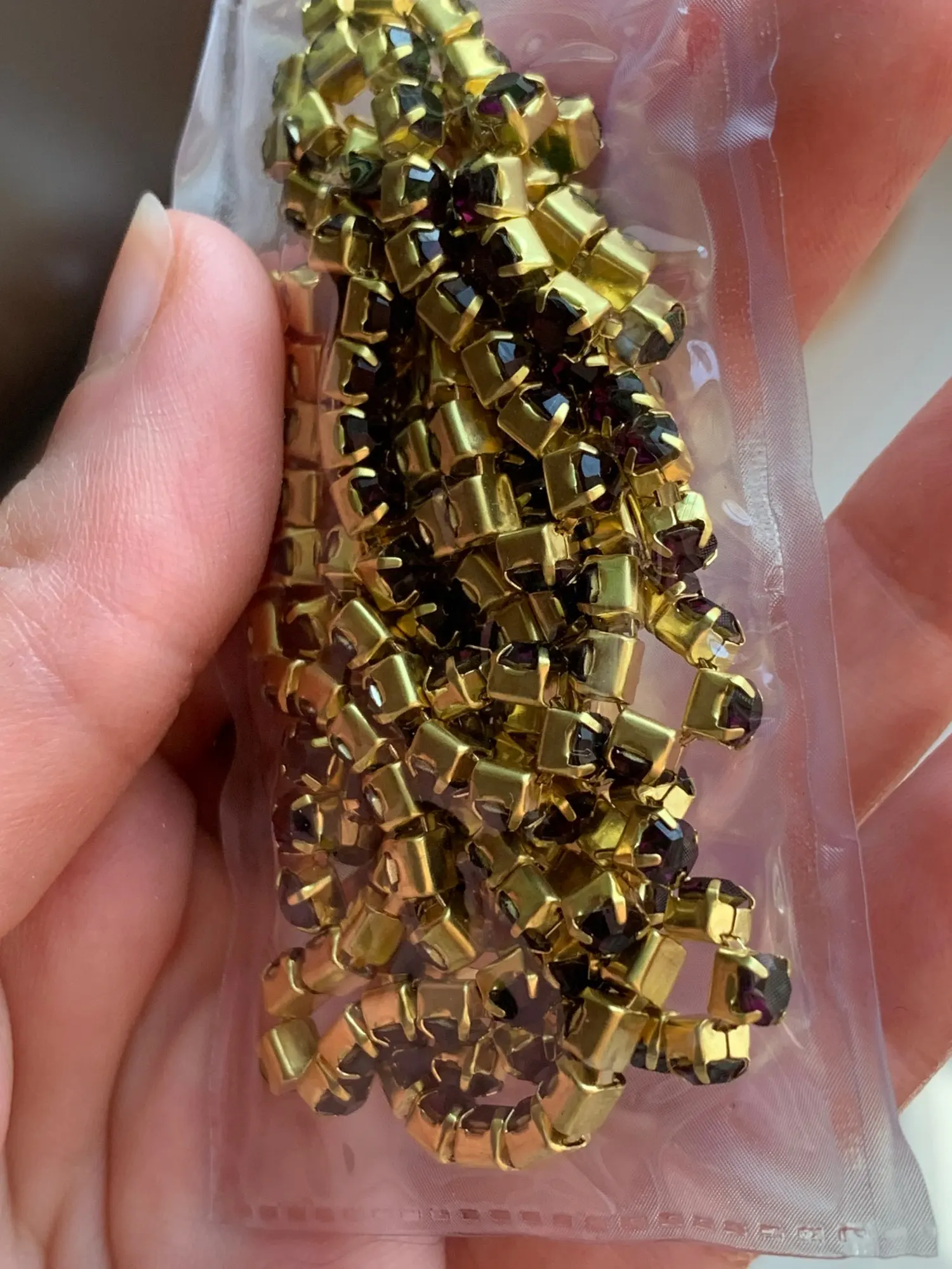 Кому интересно, цвет Deep purple, отдаёт холодинкой, в засимости от освещения может быть отдавать красноватым, постаралась запечатлеть. Брали для реставрации броши, цвет подошёл.