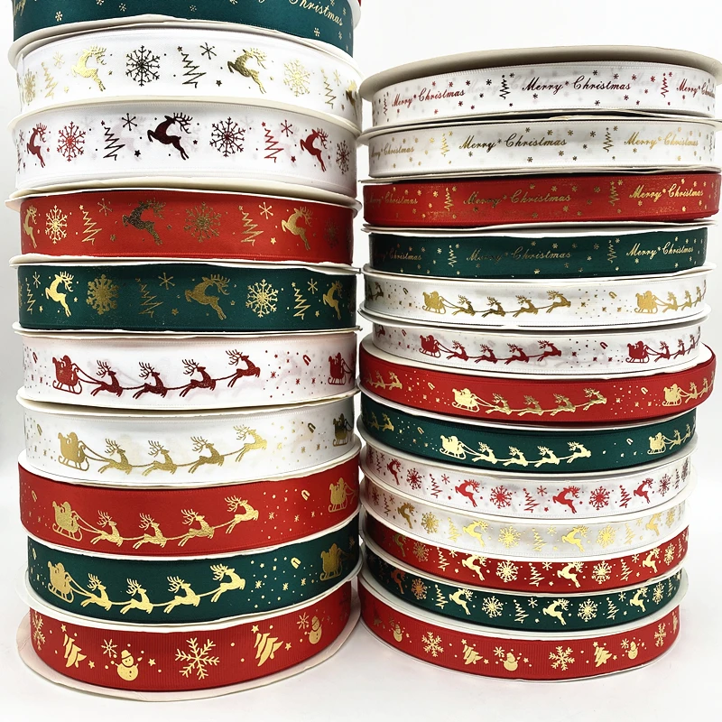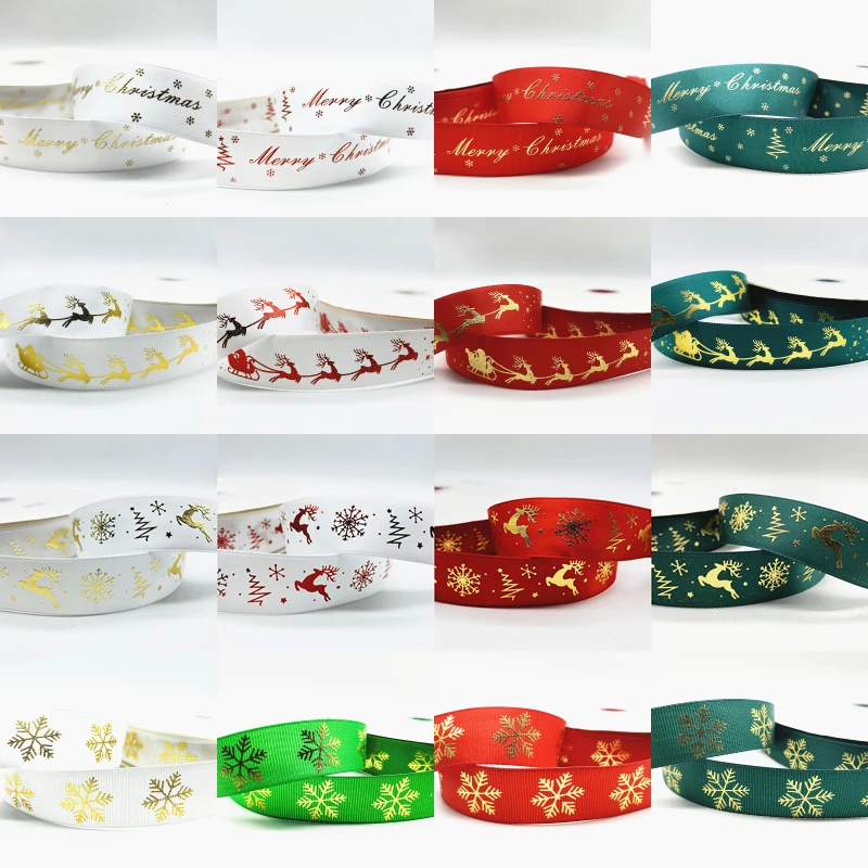 5yards 10mm 15mm 25mm Christmas Ribbon Printed Christmas Polyester Ribbon For...