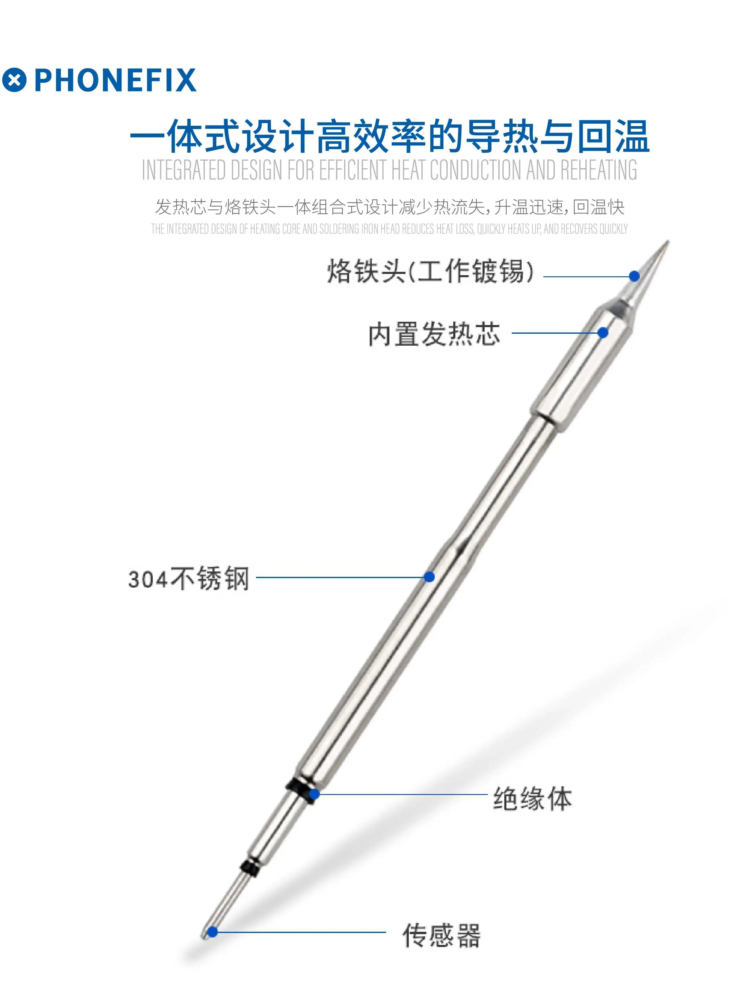 2.Интегрированная конструкция жала паяльника и нагревательного сердечника, быстрая теплопроводность, антиокислительная защита, длительный срок службы, защита окружающей среды без свинца.