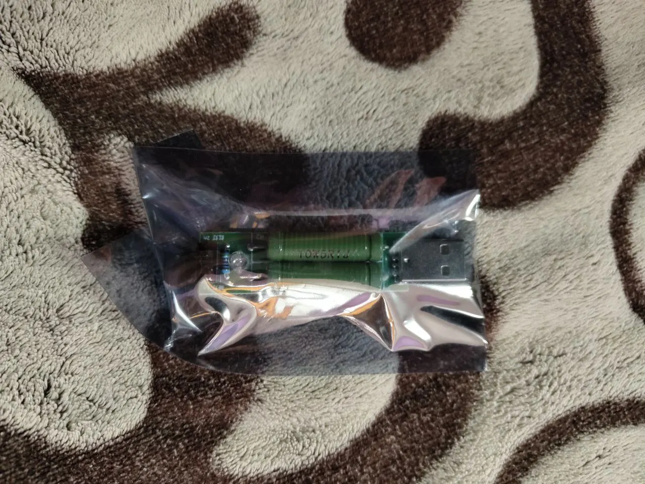 Упаковано в антистатический пакет. Местами нужно подправить пайку и отрезать ножки радиодеталей. USB-нагрузка свою цену в 30 рублей более чем оправдывает. Продавца рекомендую!