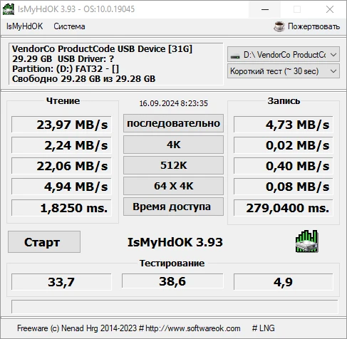 флешка рабочая, но не быстрая скорость маленькая, но. для музыки пойдёт. проверил всеми способами. флешку протестировал. флешка-не подделка.