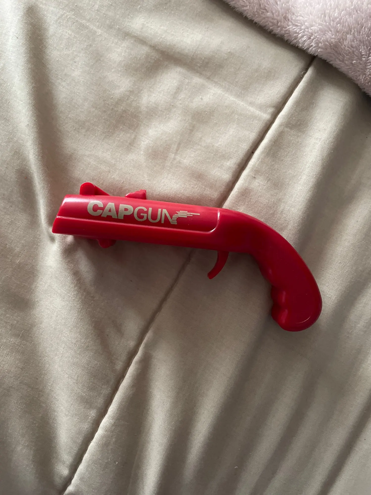 забавная открывашка для стеклянных бутылок. Взводишь курок, открываешь напиток, крышка остается заряженной в открывашку, стреляешь в мусорку. Для ленивых самое оно