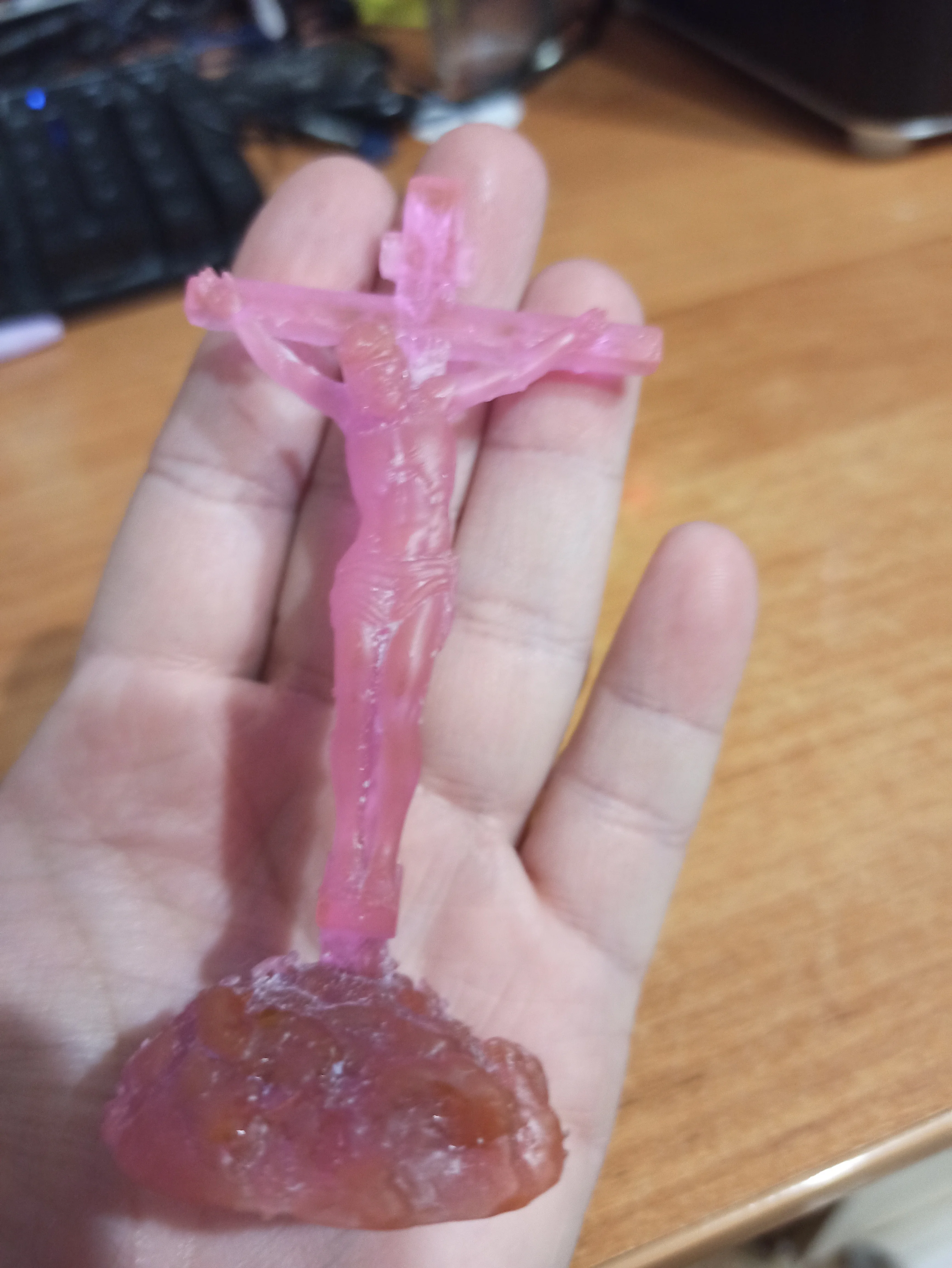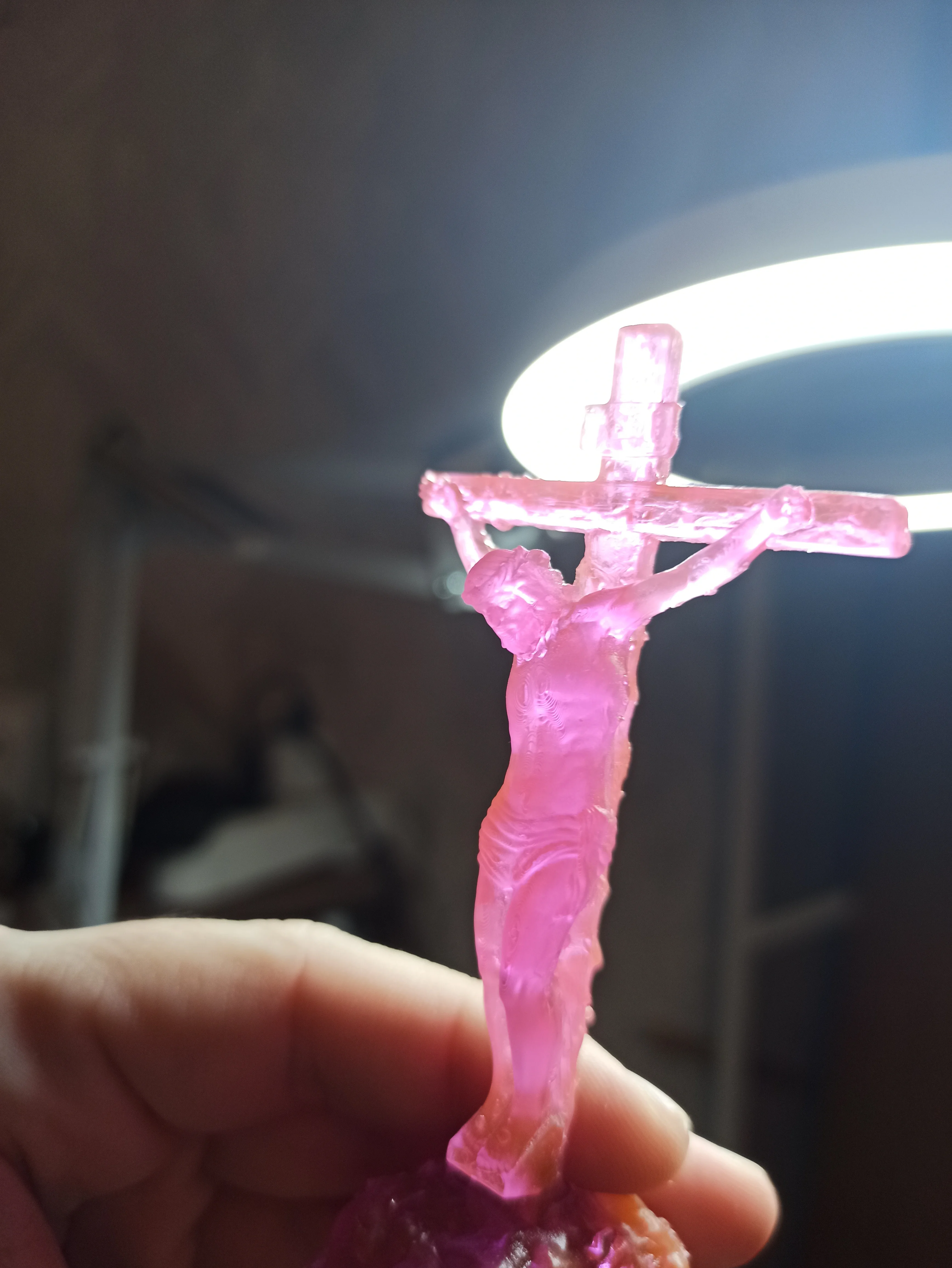 смола просто бомба! настолько крепкая, что я её еле отколупал от стола. красивая как реально кристалл. запаха вообще нет, смывается водой. мечта, я теперь у них закупаюсь! есть правда один косяк, я накосячил с поддержками и они срослись с моделью, оторвать поддержки тоже было тяжко, видимо время засветки надо уменьшать.3445 u. 17 февраля 2023