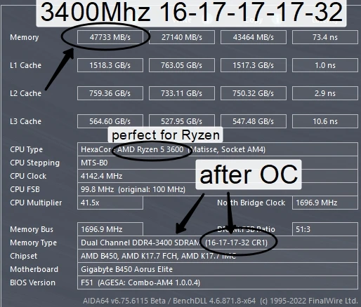 - CL 3200MHz:18-22-22