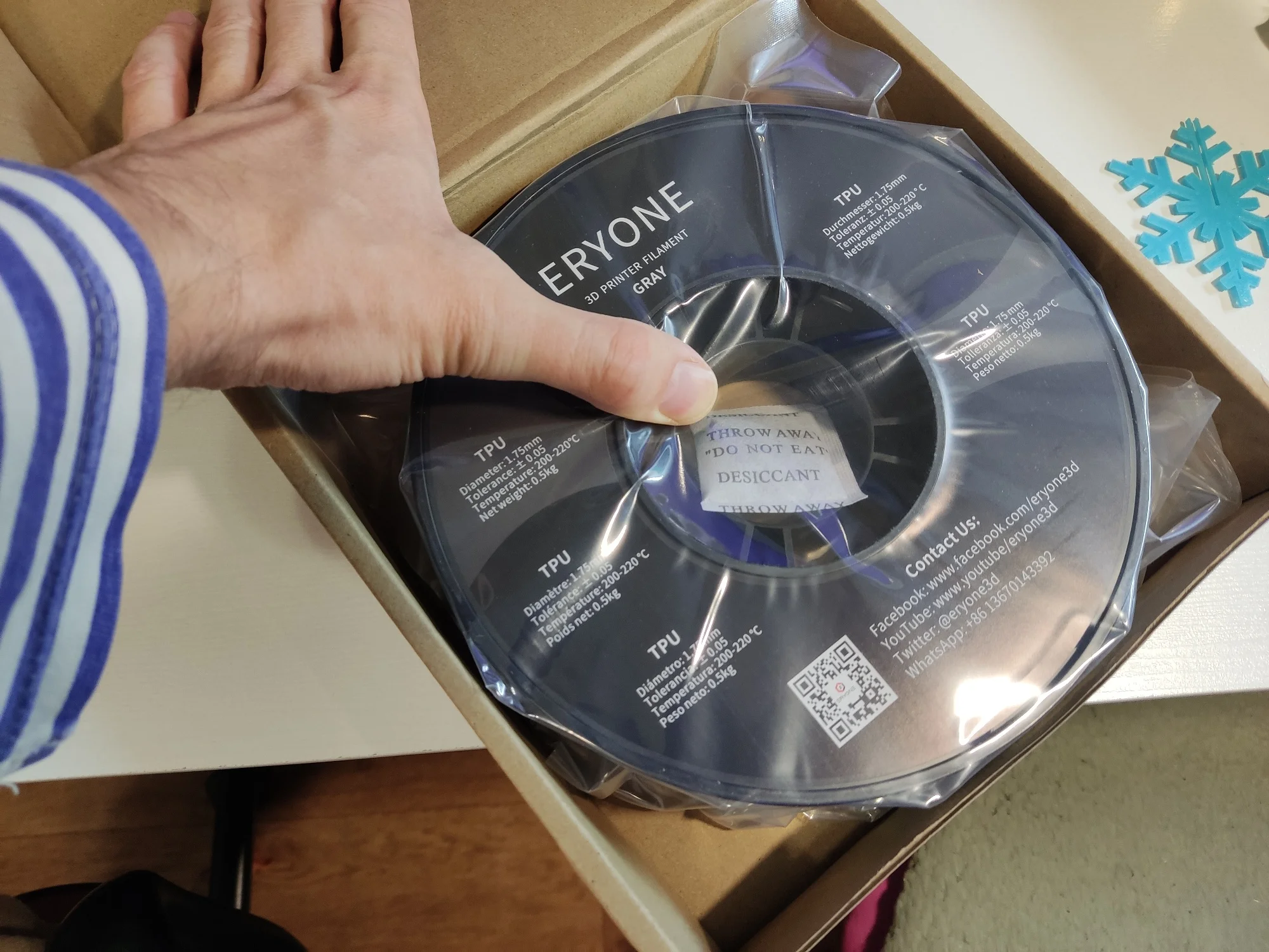 1. Нить 3D-принтера ТПУ с вакуумной герметичностью и осушителем.
