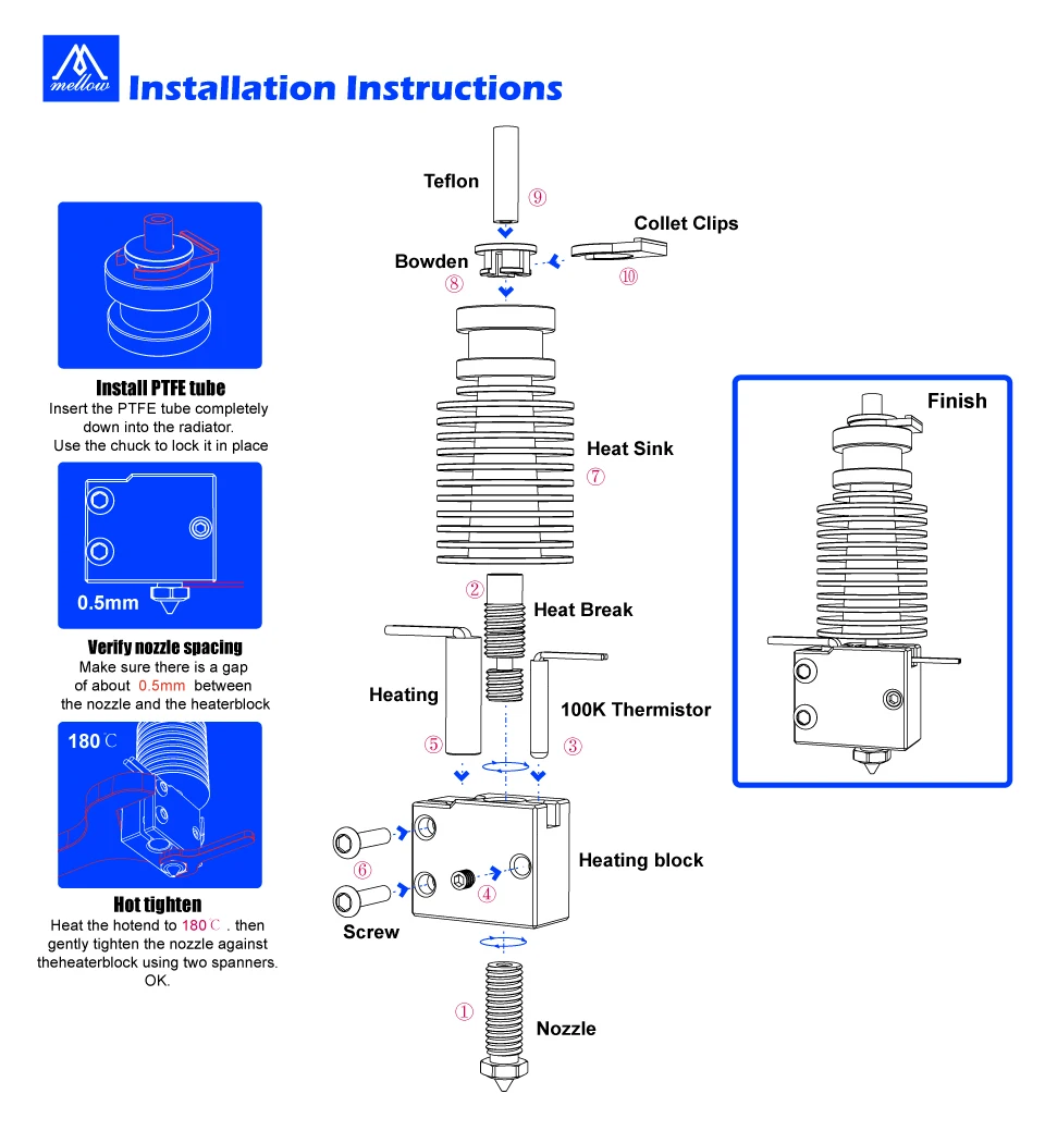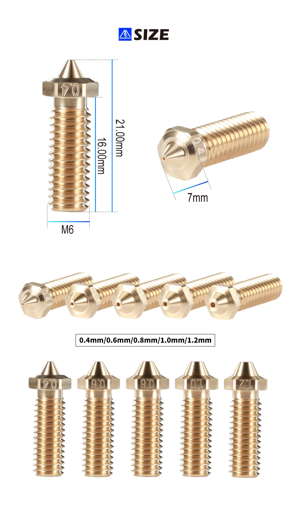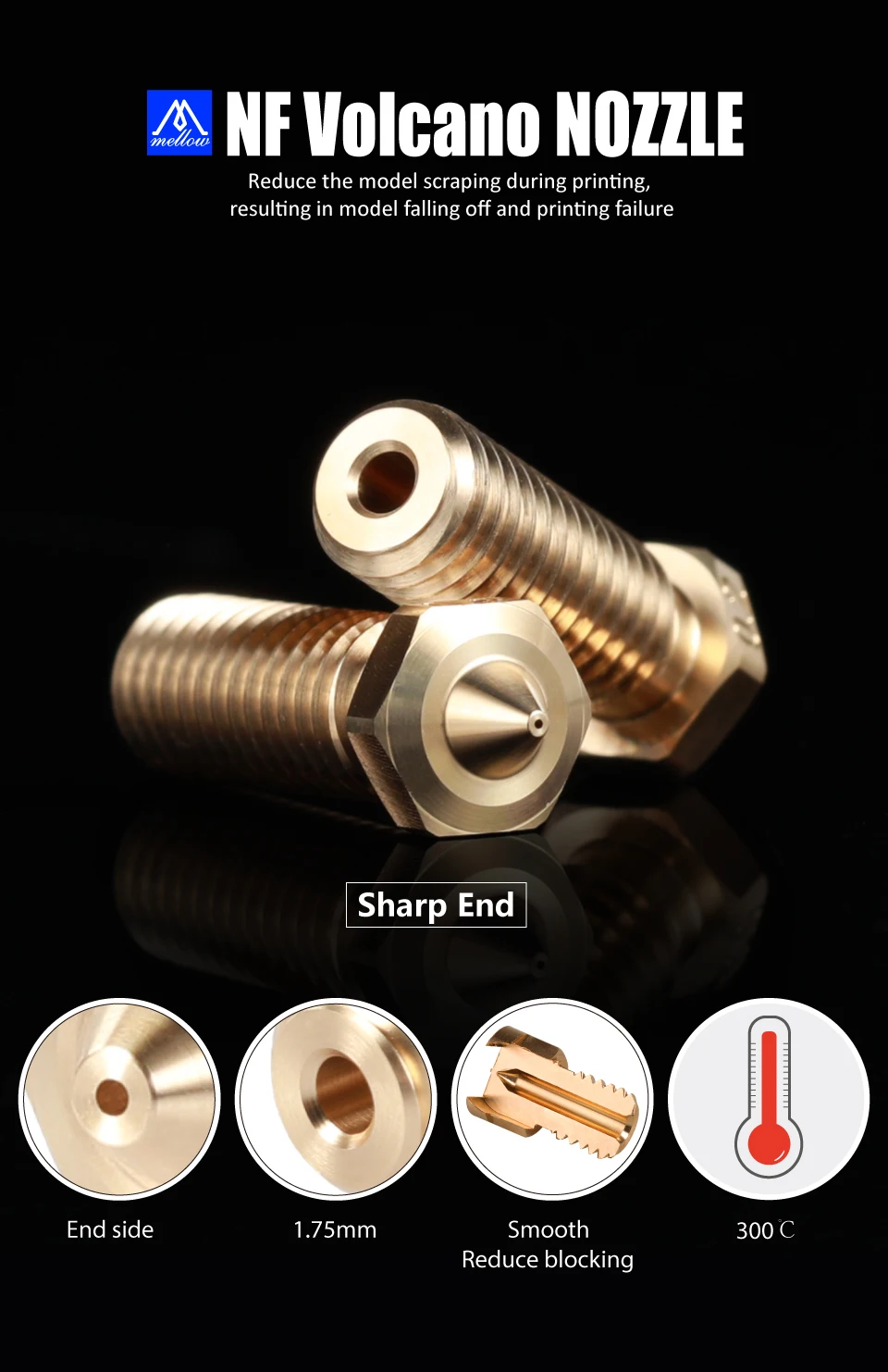 Mellow 1 шт. NF-V6 острый вулкан сопло латунь удлинить экструдер сопло 0,4-1,2...