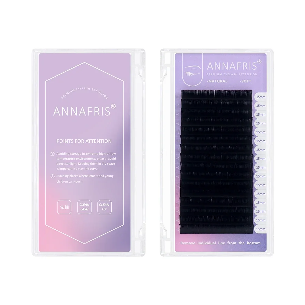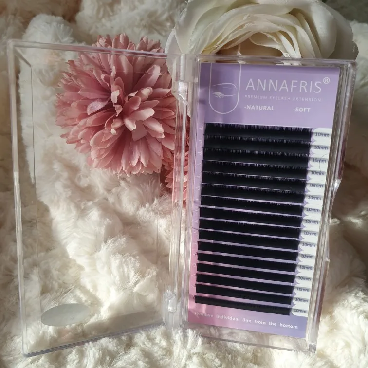 1: Ресницы ANNAFRIS импортированы из Кореи, специально исследованные материалы из синтетического ПБТ-волокна: легкие, натуральные и мягкие.