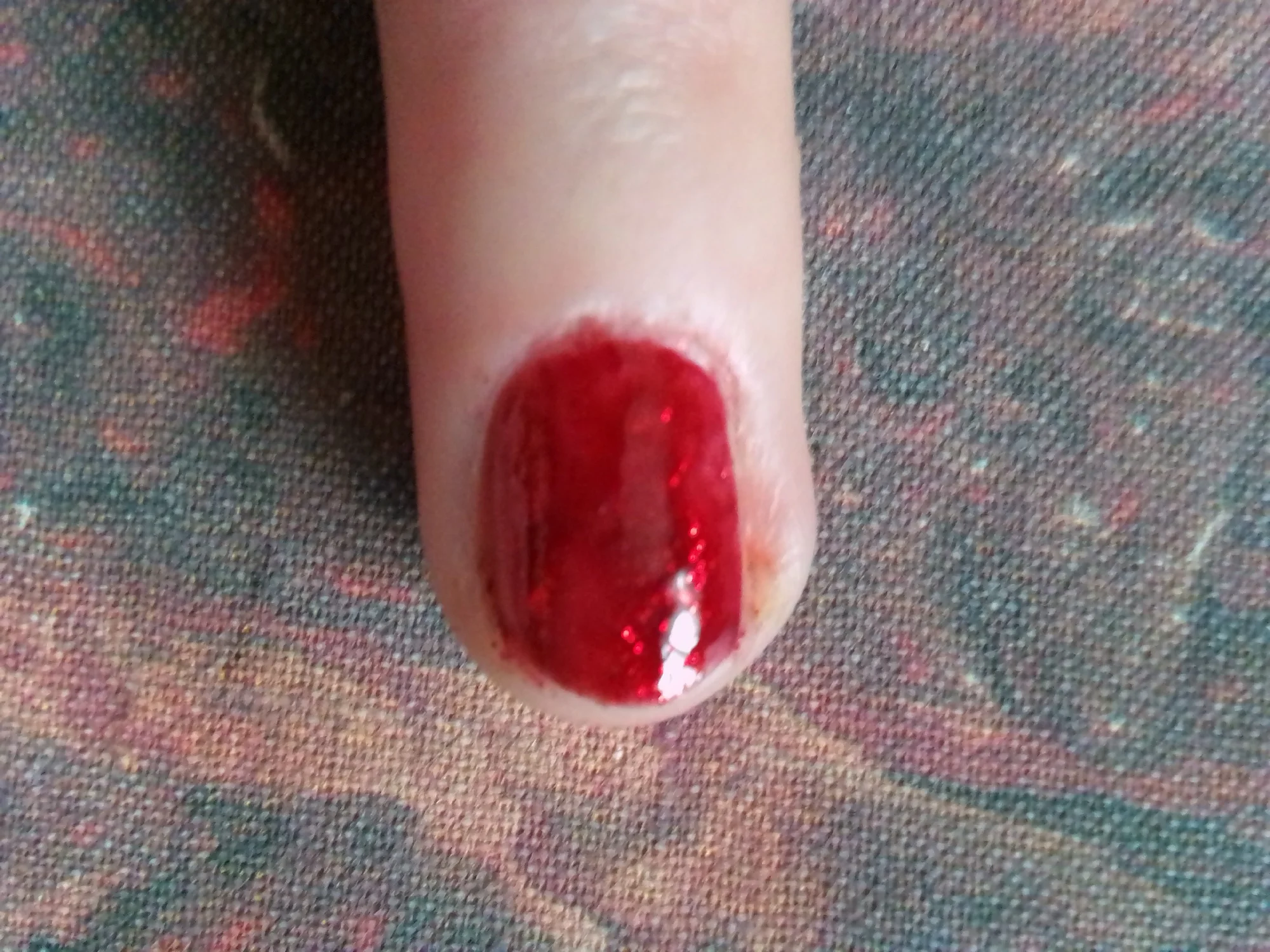 Ужасный лак. Наносится плохо,не ровно, размазывается и не сохнет СОВСЕМ.И цвет,на фото бордовый,тёмный,а пришёл, какой-то крававо-красный.По консистенции похож на плохо разведённый желатин.Даже через полчаса стирается пальцем как обыкновенный вазелин.