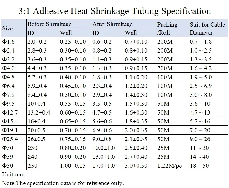 Термоусадочная трубка 3:1 с клеевой трубкой PE 1М