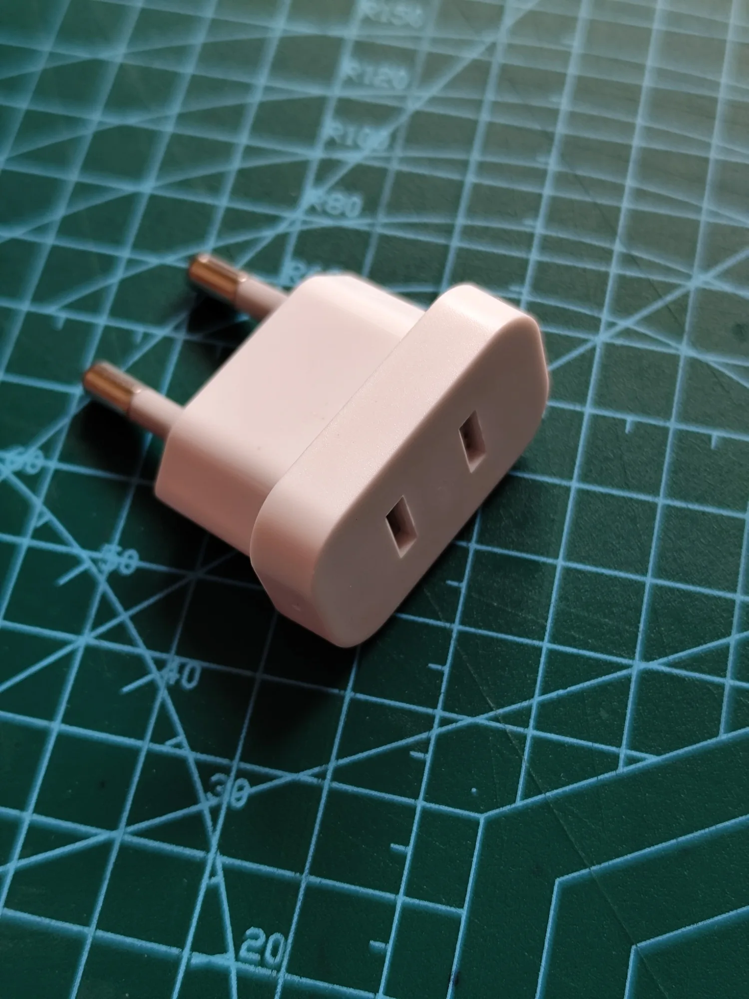 До Сальска дошло за две недели, на кассу "Пятёрочки". Переходник получше, чем те, которые обычно кладут к зарядкам с китайской вилкой. Имеются защитные шторки, вилка зарядки держится в этом переходнике крепче, металлические части переходника не магнитятся. Пластиковая оболочка штырей переходника немного тоньше металлической, поэтому при вытаскивании из розетки переходник цепляется краями металлической части штырей за края отверстий розетки. Хотел разобрать переходник, но похоже он разбирается только вандальным методом. Максимальная нагрузка 2,5 А, 250 В - чайник не подключишь :-)