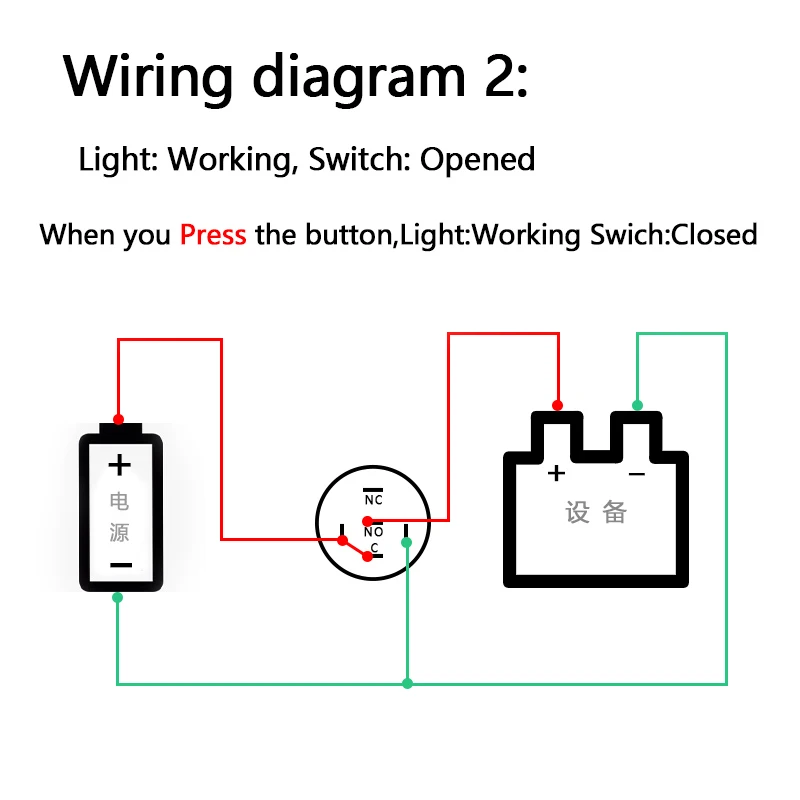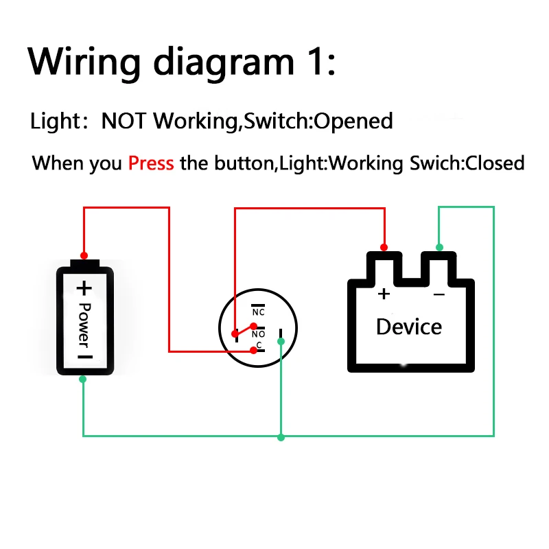 1. Подключите «НЕТ» и «C»: цепь всегда разомкнута, если не нажать кнопку.2. Подключите «NC» и «C»: цепь всегда закрывается, если не нажать кнопку.