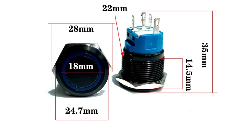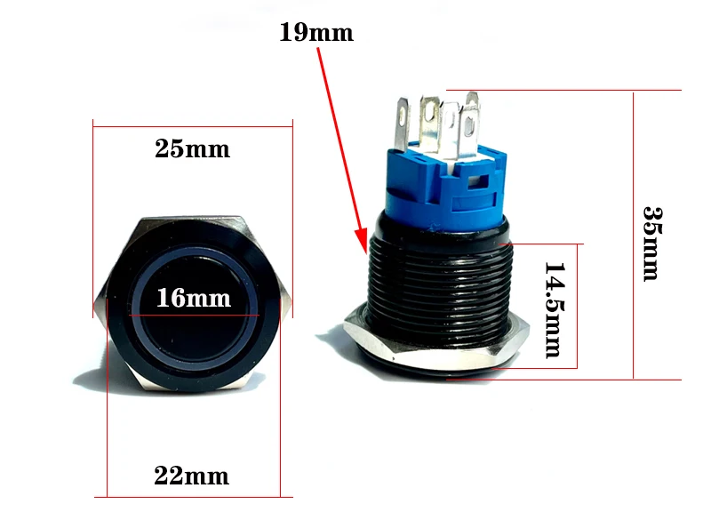 Водонепроницаемые алюминиевые кнопки переключателя 12/16/19/22 мм с подсветкой