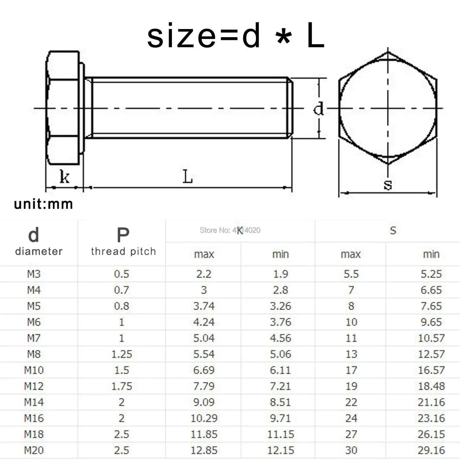 Размер:Д(Диаметр резьбы) xL(Длина резьбы)