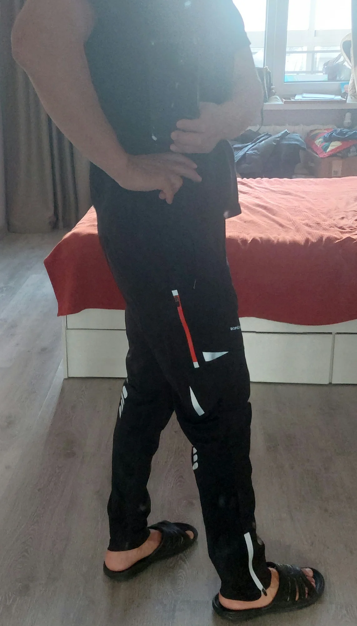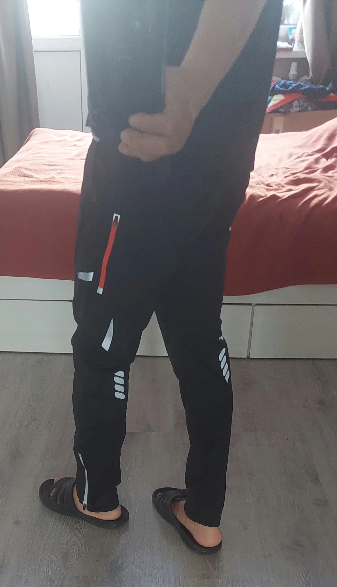 Доставка-месяц,на рост 170/88брал хххл,подошло, но см на 5 длинноваты, и в талии практически нет запаса.Очень много странных решений,вместо ремня-веревка изнутри, зачем она на велоштанах непонятно. В районе поясницы вентиляционные отверстия расположены выходом вниз, тоже странно, снизу на штанинах молнии для расширения, зачем они на летних штанах непонятно, может для катания в сапогах...Пошито из разных тканей, Где-то тянется, Где-то нет,естественно большое количество швов и торчащих ниток.Сбоку есть карманы небольшие на молниях, ниже молнии есть для вентиляции по бокам.В целом на первый взгляд впечатление не очень качественного товара, за эти деньги можно в каком нибудь спортмастере по скидкам купить полностью тянущиеся треники, которые будут намного удобнее, и будут тянутся в любом месте.