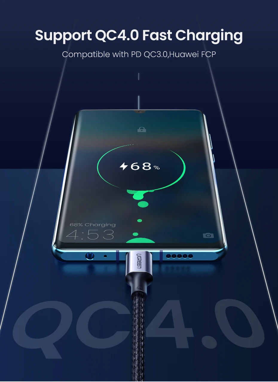 Ugreen usb type C-USB C кабель для samsung Galaxy S9 PD 60 Вт быстрое зарядное...