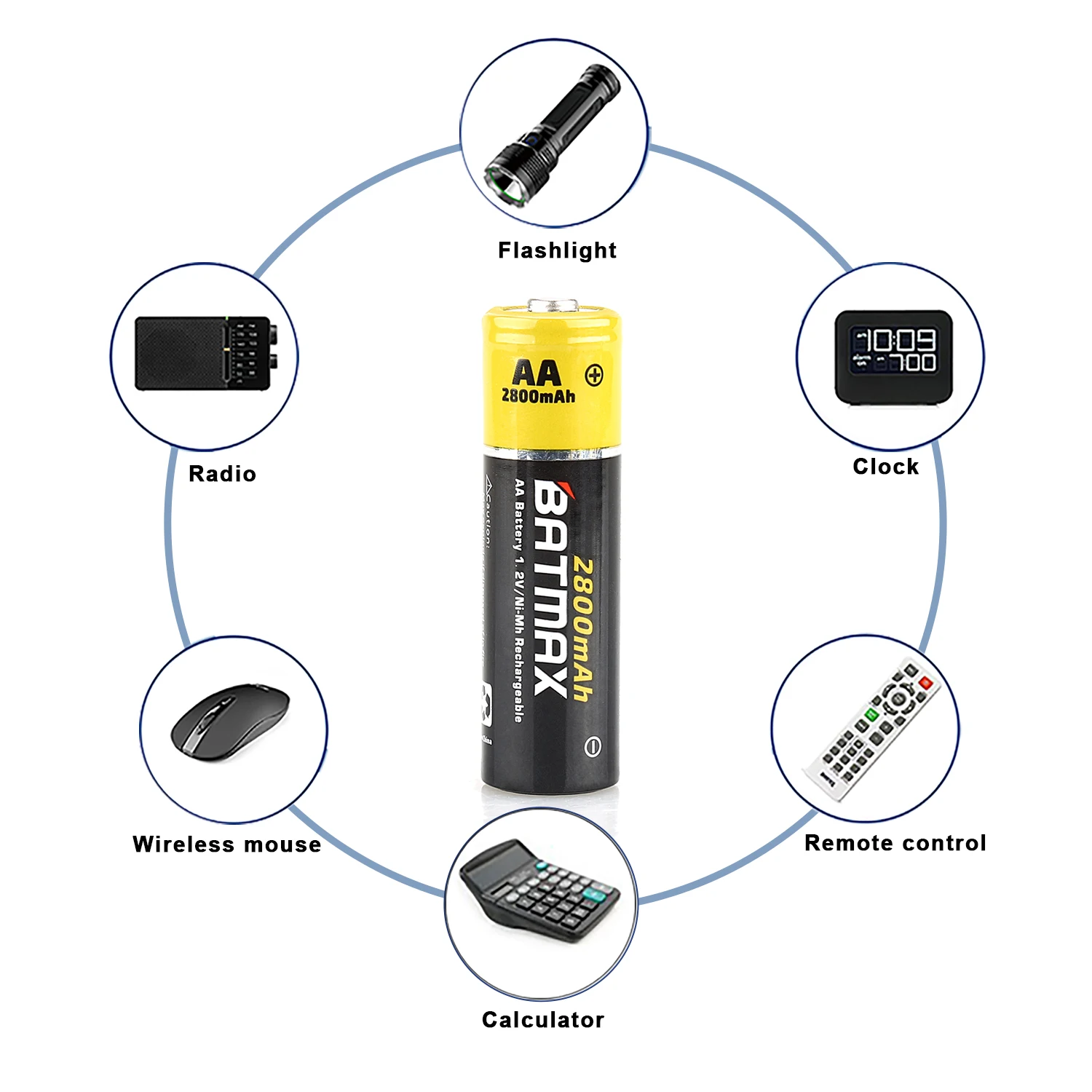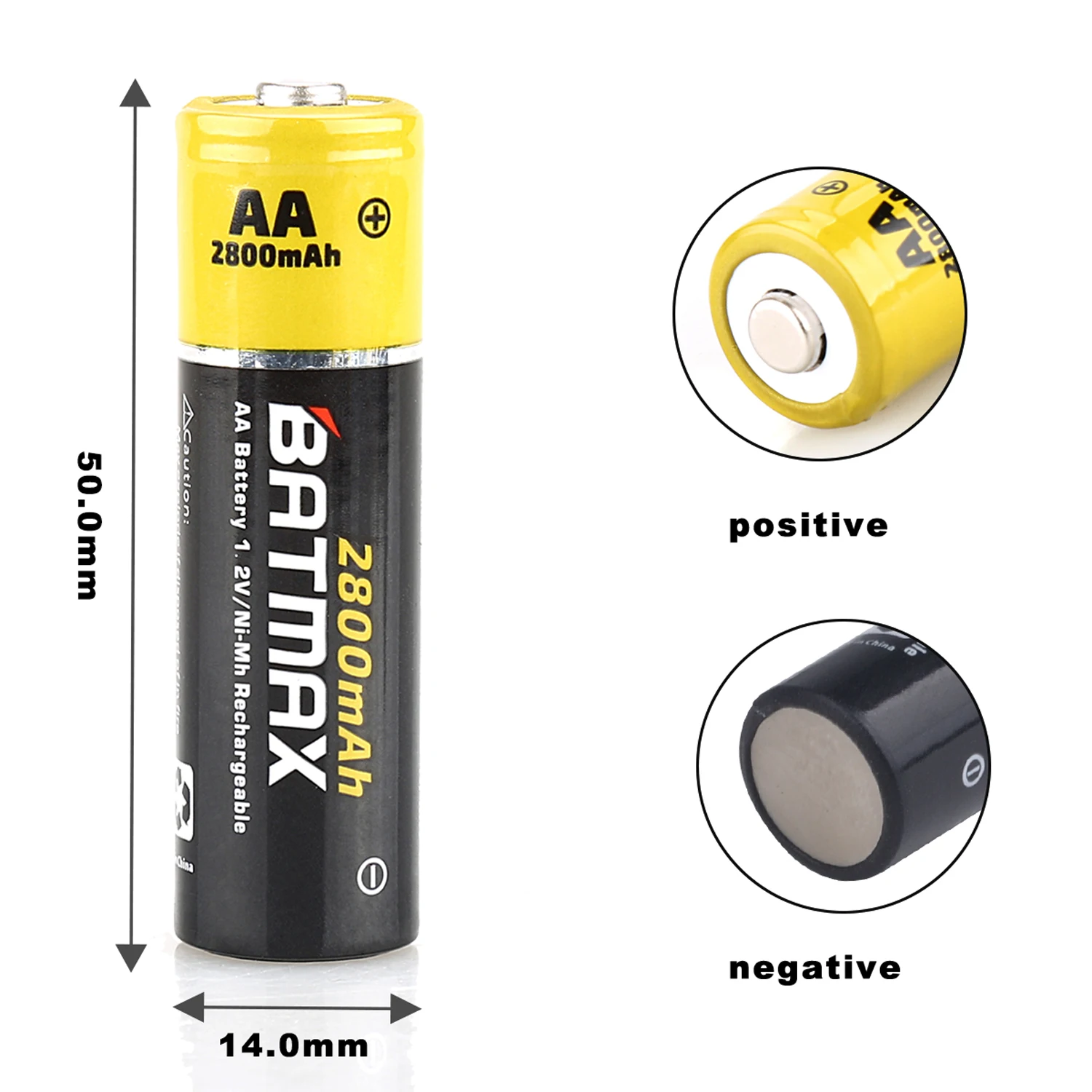 Batmax 2800mAh AA Battery 4/8/12/16/20PCS Ni-Mh Rechargeable Battery for...