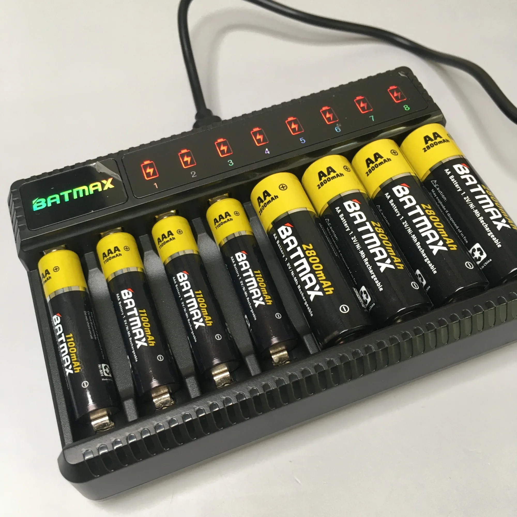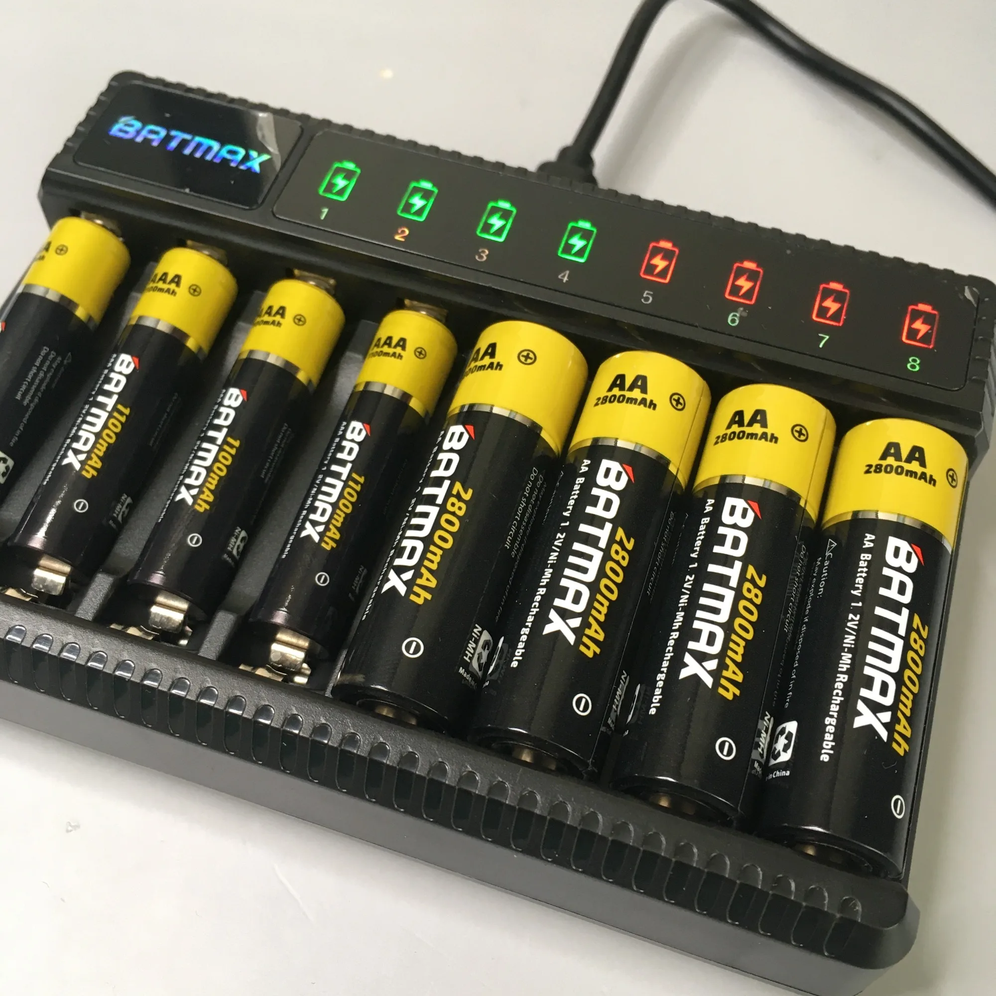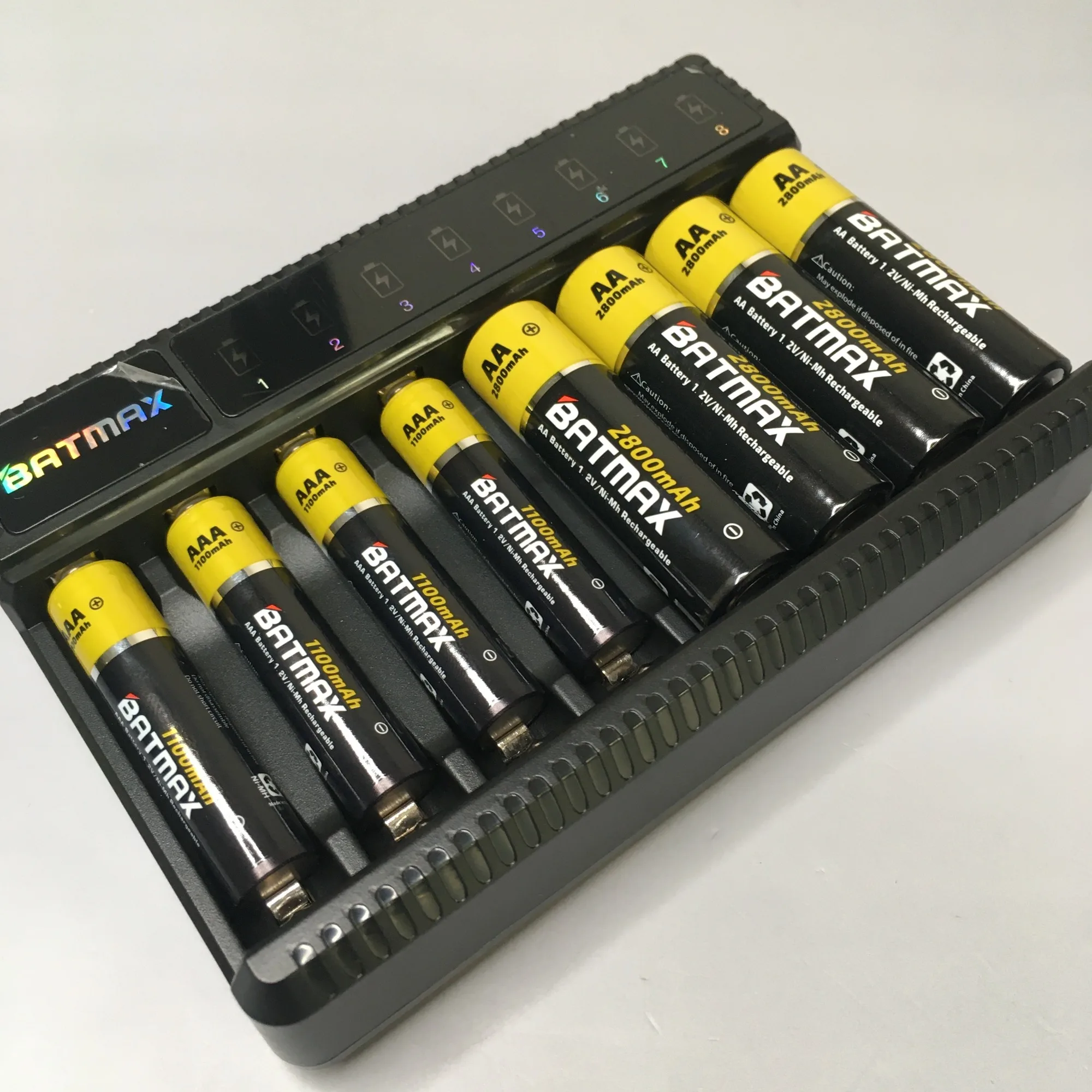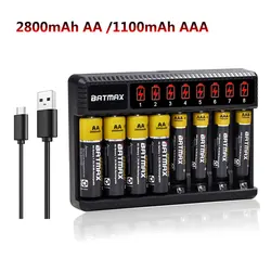 Аккумулятор AAA Batmax 2800 мАч AA/1100 мАч + ЖК-дисплей с 8 слотами USB-зарядное устройство для AA и AAA Ni-MH