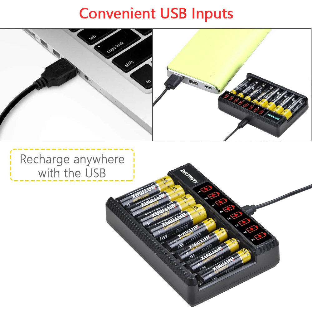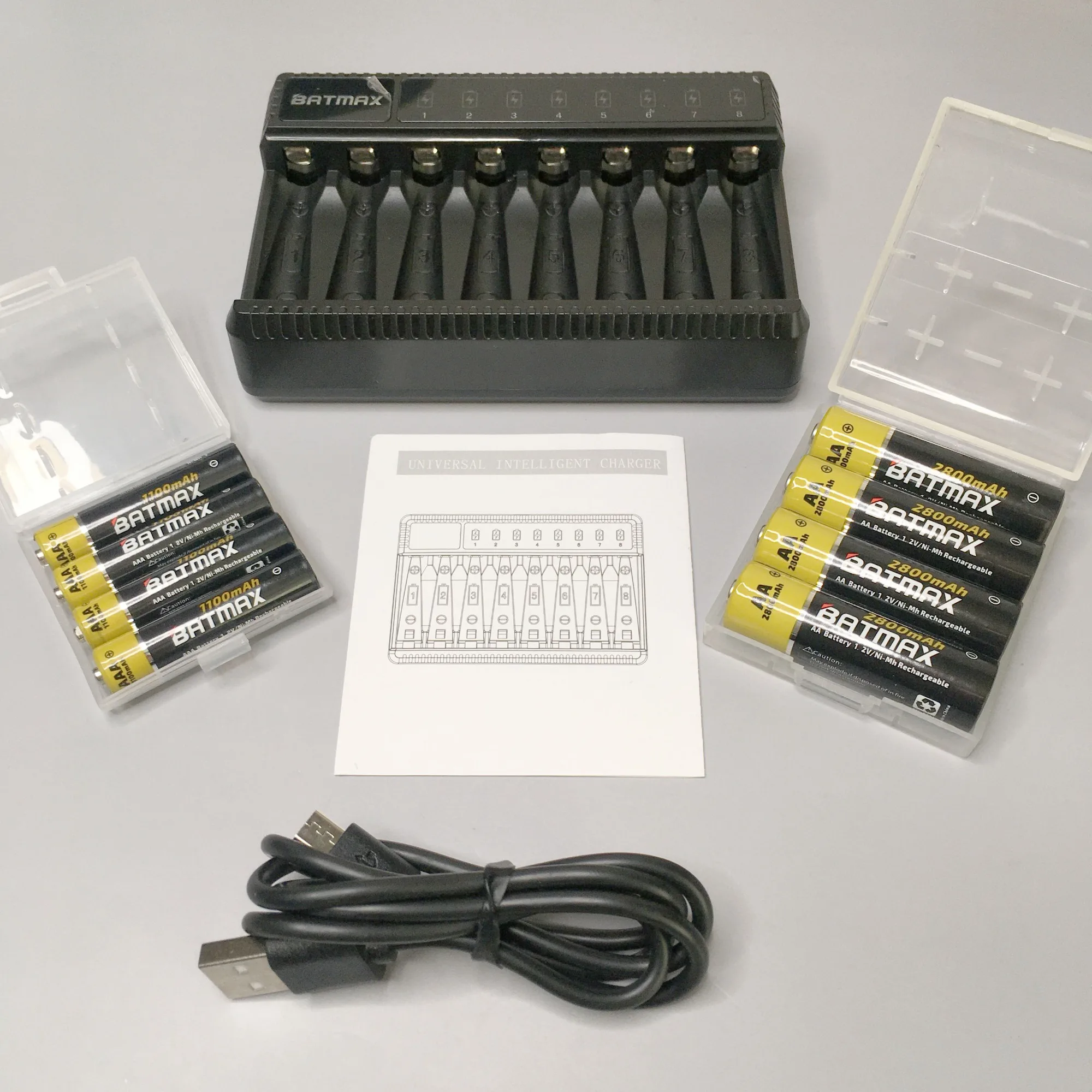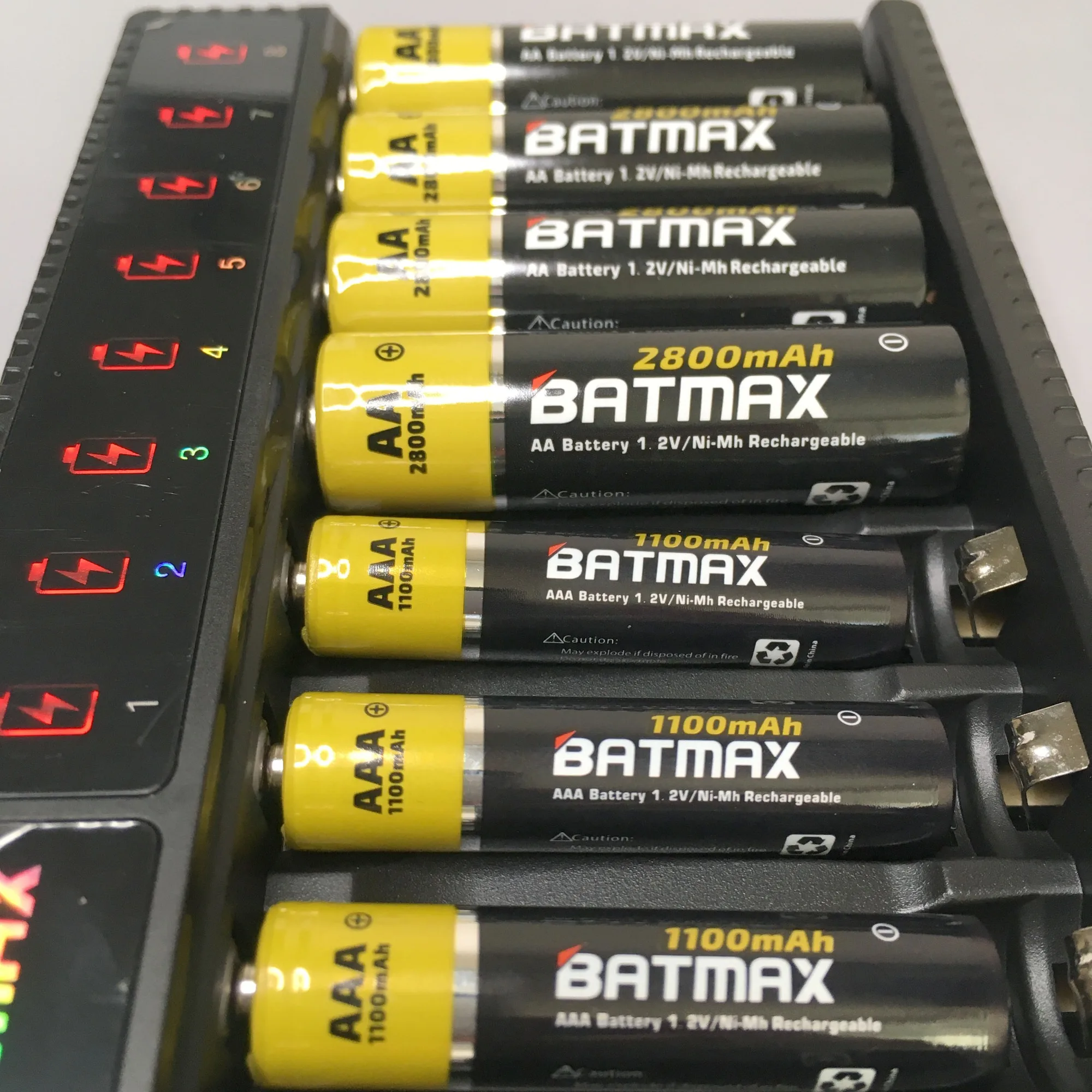 Аккумулятор AAA Batmax 2800 мАч AA/1100 мАч + ЖК-дисплей с 8 слотами USB-зарядное устройство для AA и AAA Ni-MH