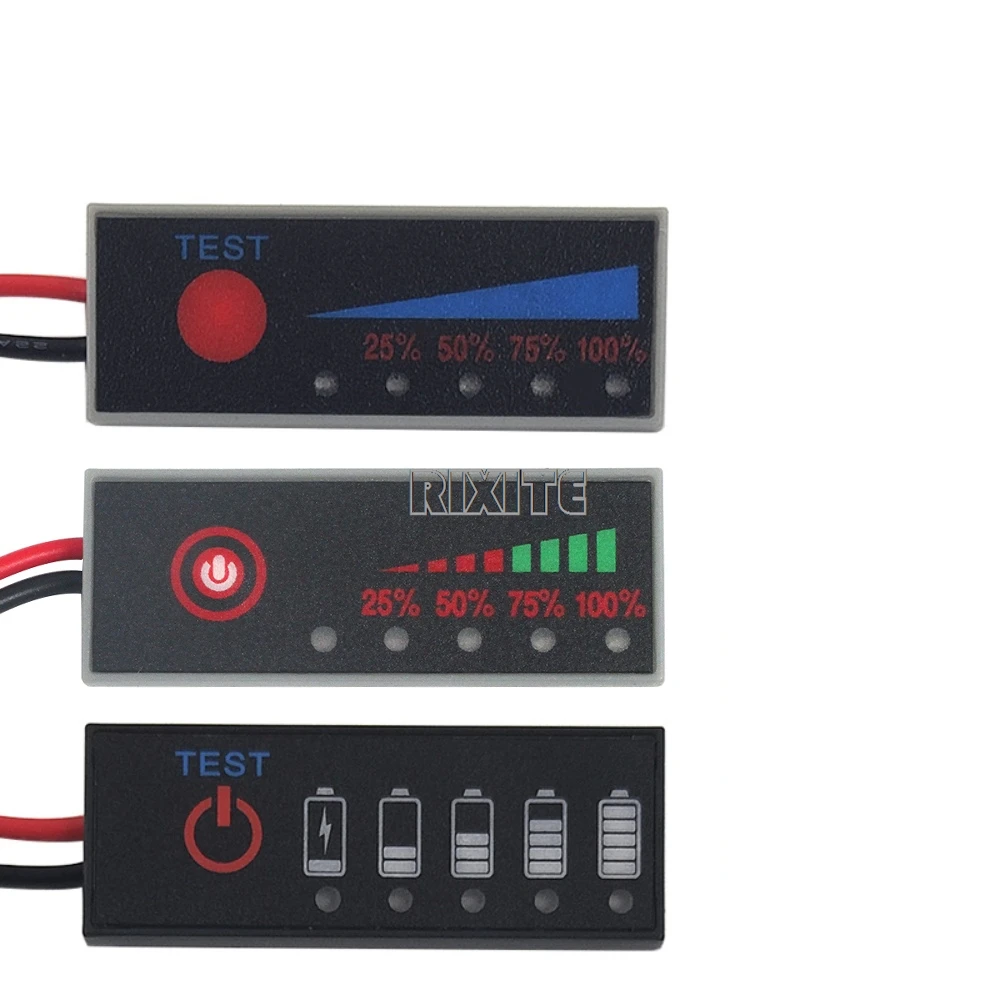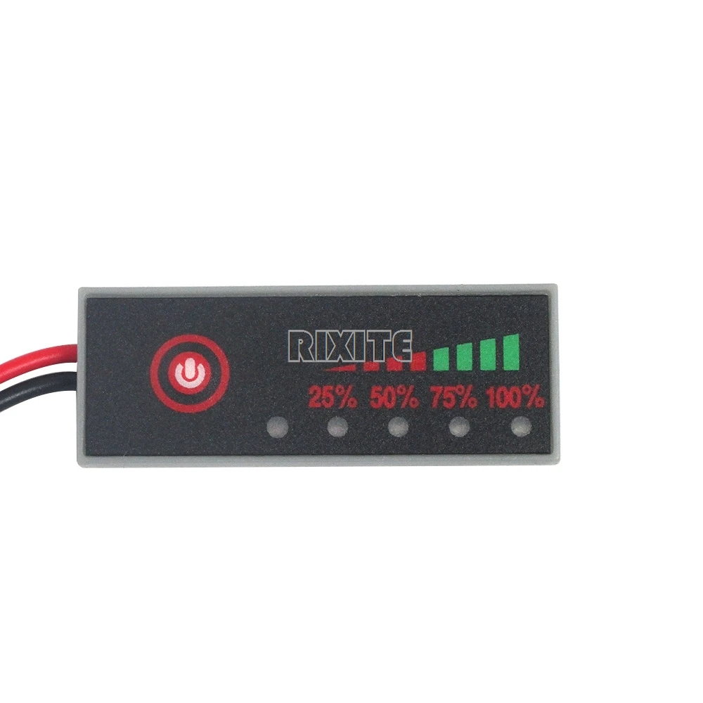 : Литиевая батарея 3,7 В использует 1 красный индикатор питания и 4 зеленых индикатора заряда батареи (другие диапазоны напряжения: 1 красный индикатор питания и 4 синих индикатора батареи).